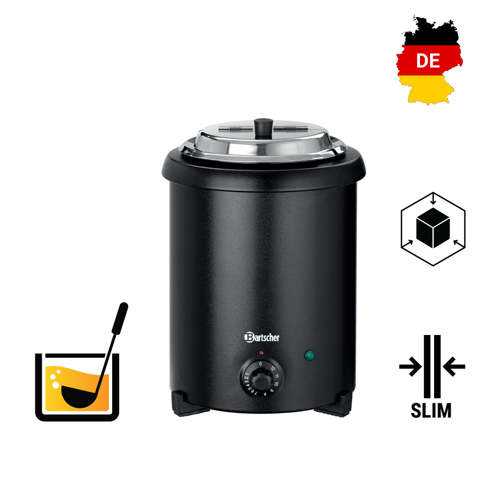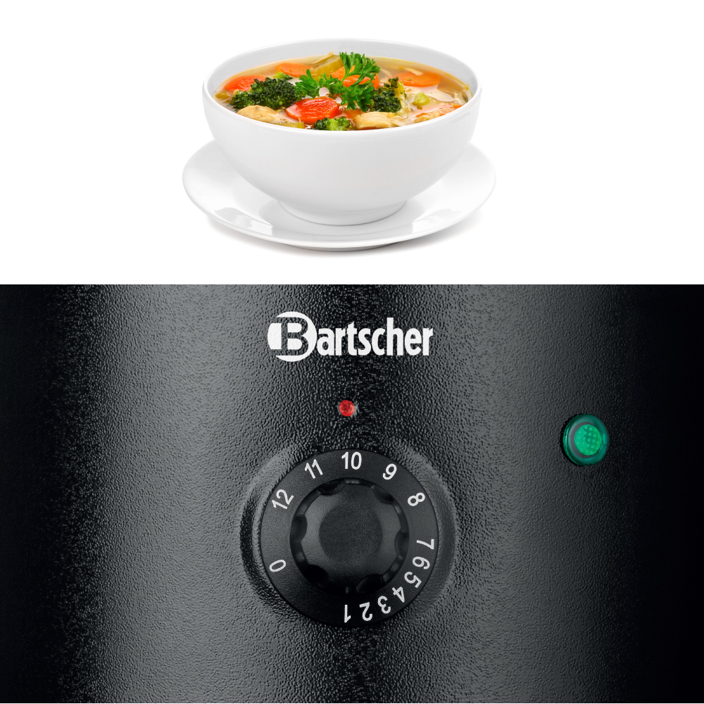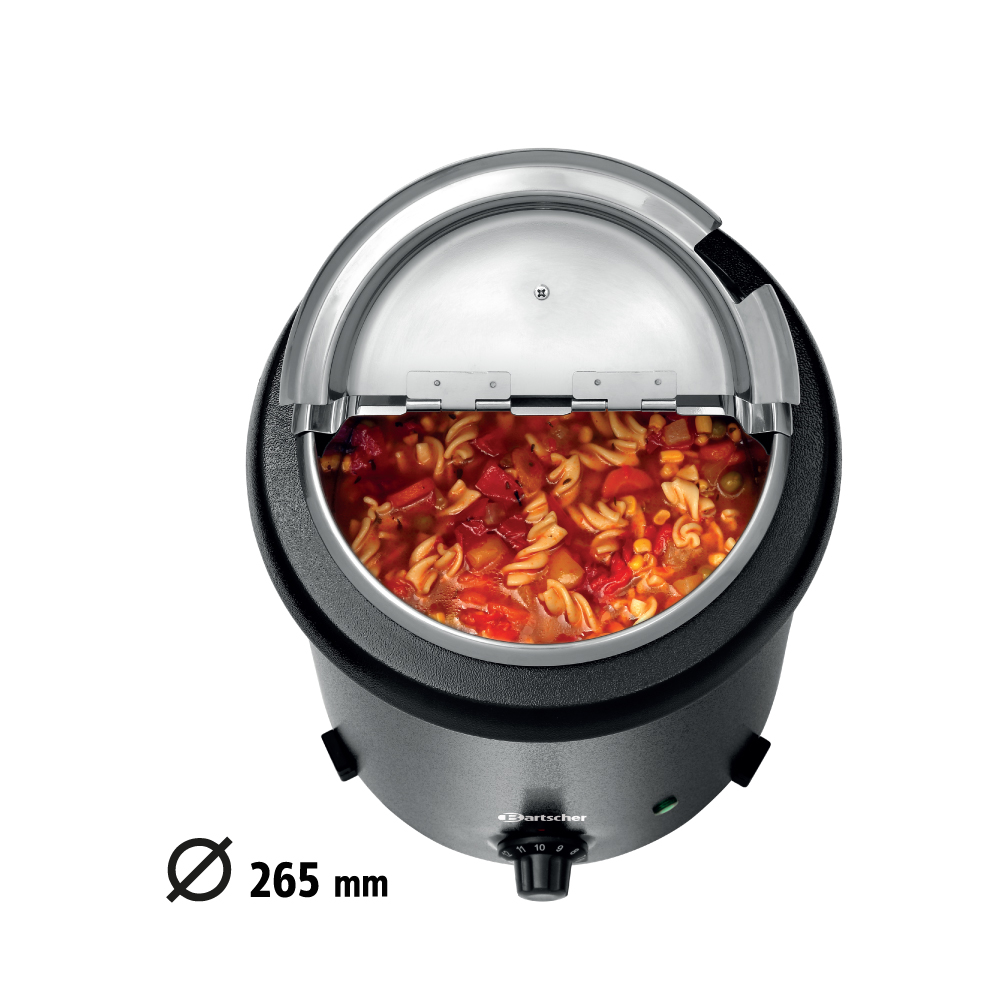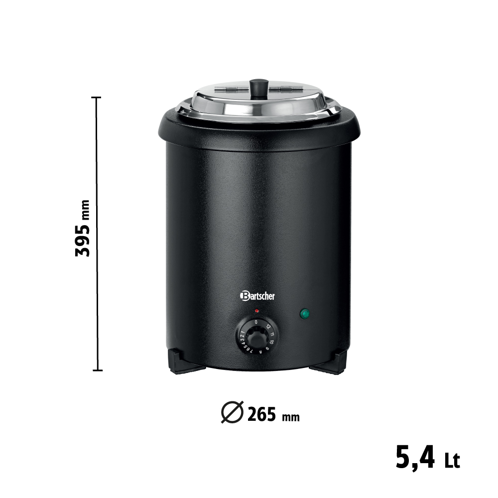 Διαστάσεις 255x267x385(h)mm Χωρητικότητα 5.4 lt Θερμοκρασία 35 - 95οC Ισχύς 300 Watt / 230V / 50-60Ηz Βάρος 3.1 Κg Kαπάκι:Περιστρεφόμενο , διαφανές , αναδιπλούμενo , με άνοιγμα για κουτάλα. 8 ετικέτες σούπας με μαγνήτη
