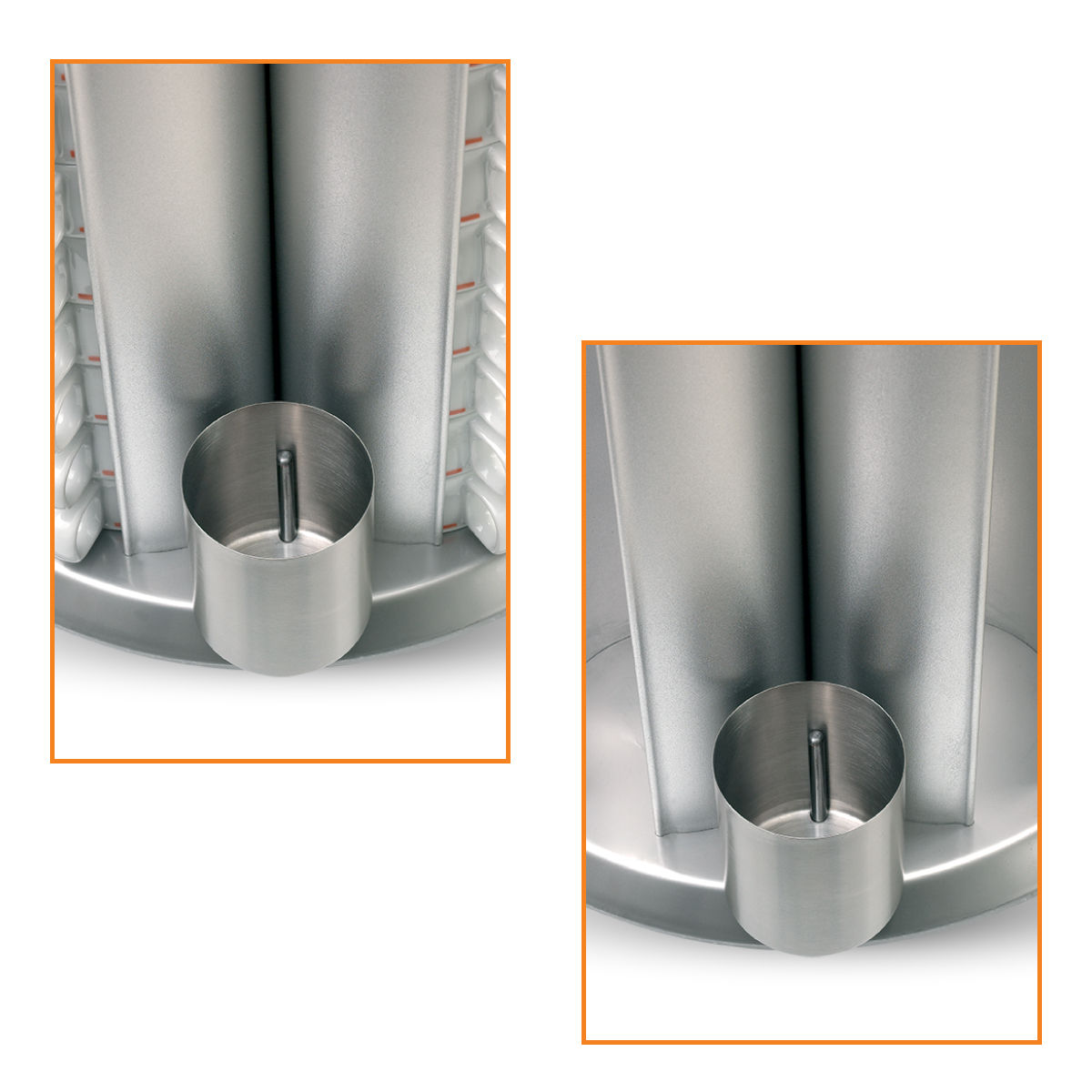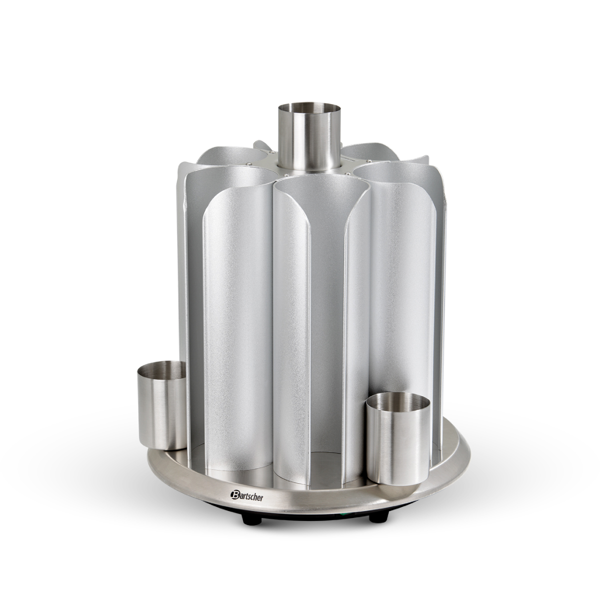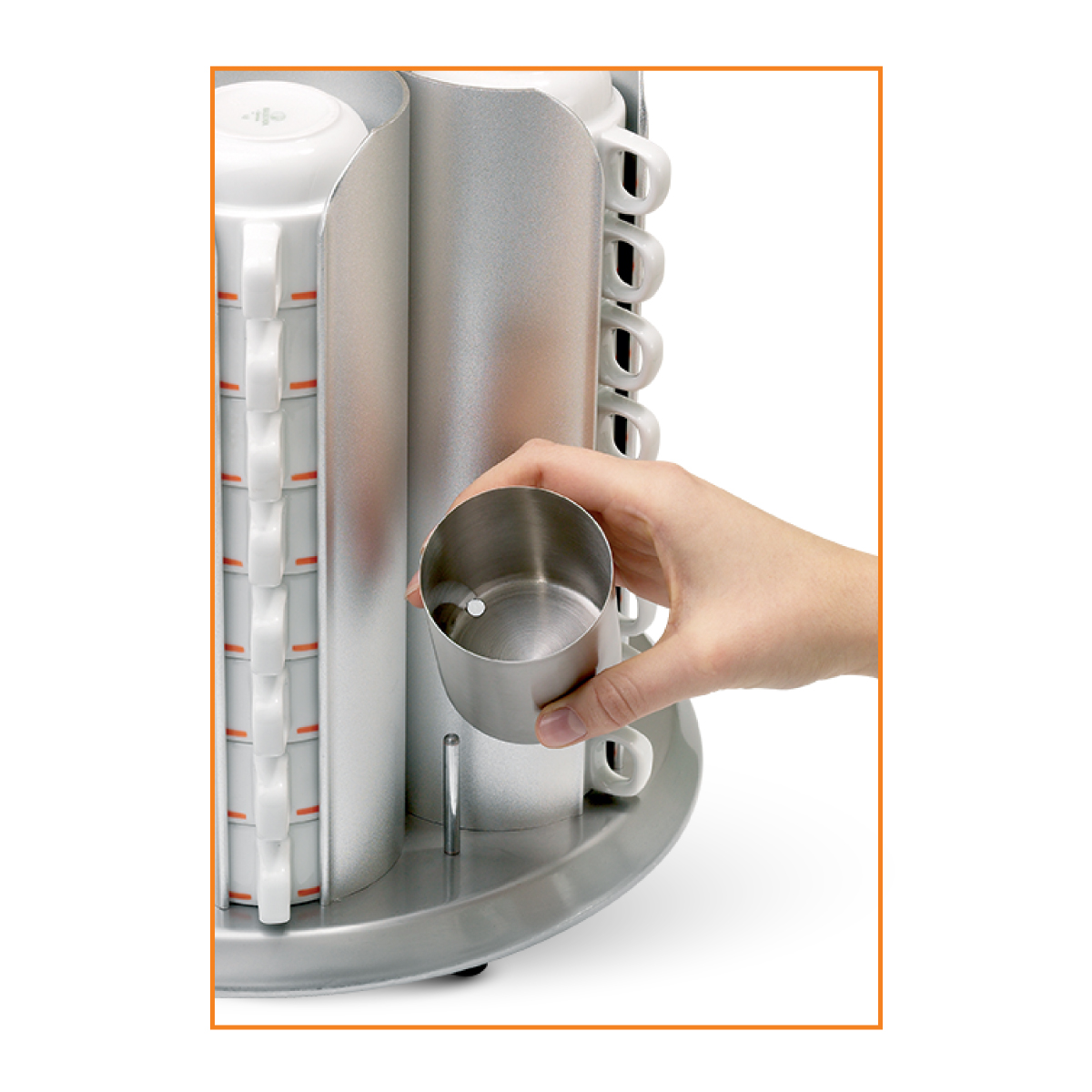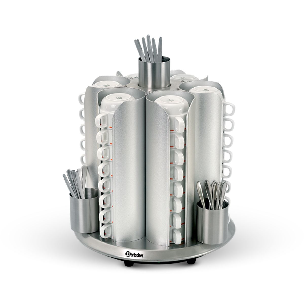 Διαστάσεις 360x360x415(h) mm Μέγιστη διάμετρος φλιτζανιών 90 mm Διαστάσεις θήκης φλιτζανιών Ø95x300(h)mm Χωρητικότητα φλιτζανιών 48 Δοχεία για κουτάλια 4 (αφαιρούμενα) Εύρος θερμοκρασίας 30 - 45°C Ισχύς 200 W / 230 V / 50 Hz Βάρος 7.5 Kg Κωδικός προϊόντος 103067 Διακόπτης on/off Περιστρεφόμενη βάση Δεν συμπεριλαμβάνονται φλιτζάνια & κουτάλια.