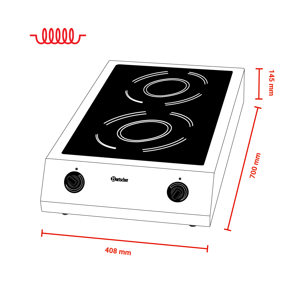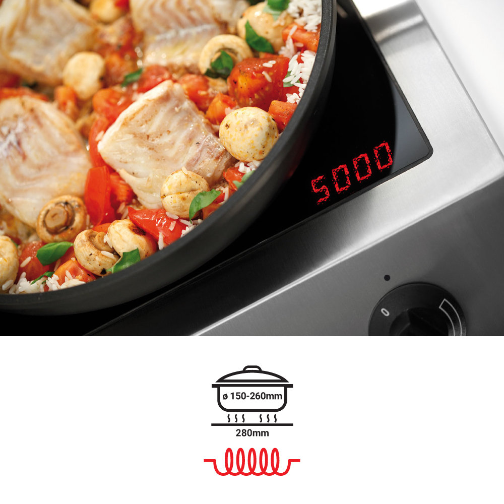 Διαστάσεις 408x700x145(h)mm Διάμετρος εστιών Ø 245mm Διαστάσεις γυάλινης επιφάνειας 335x565mm Ιδανική επιφάνεια ψησίματος min Ø 120mm / max Ø 280mm Ισχύς 7000Watt / 380V / 50Hz Μέγιστη ισχύς μπροστινής εστίας 3500 Watt Μέγιστη ισχύς οπίσθιας εστίας 3500 Watt Στάδια ρυθμίσεων ισχύος 10+1 Καθαρό Βάρος 16,2 kg Ηλεκτρονική προστασία υπερθέρμανσης Με φίλτρο σκόνης και λίπους (απαιτείται τακτικός καθαρισμός από το χρήστη για την ισχύ της εγγύησης)