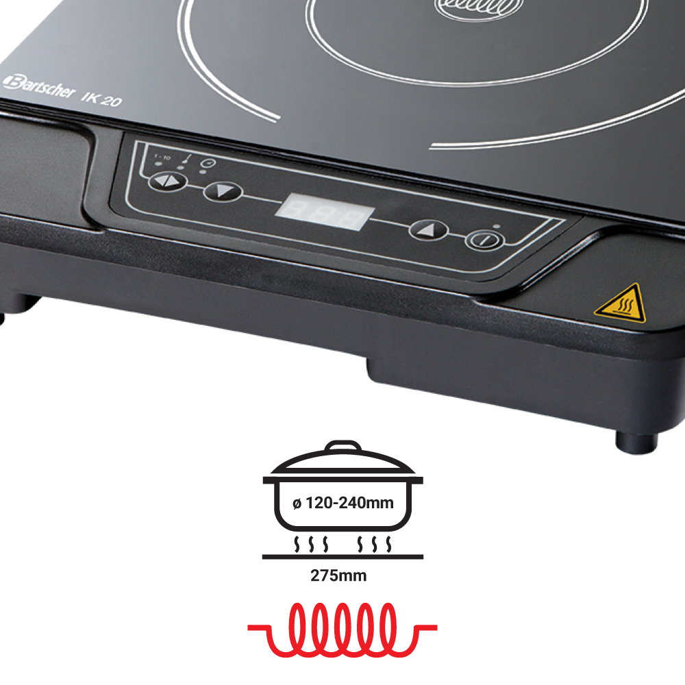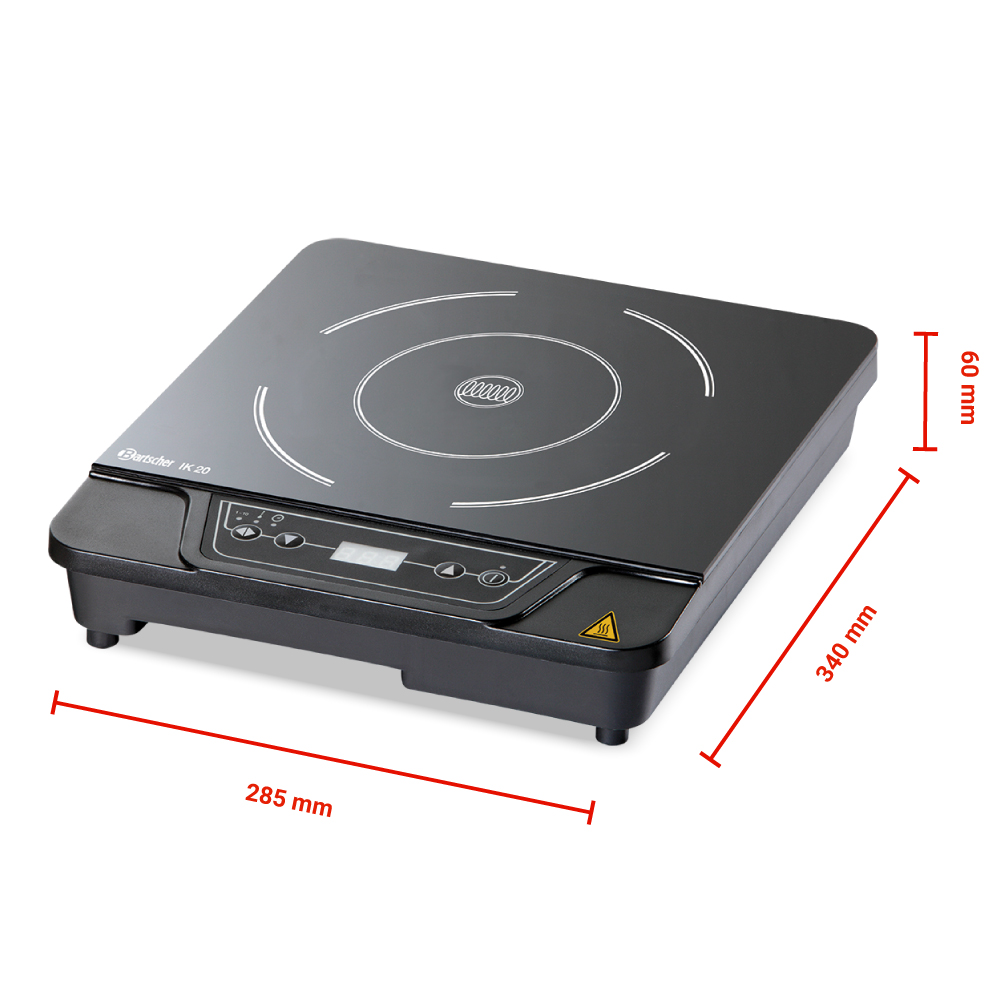 Διαστάσεις 285x340x60(h)mm Διάμετρος εστίας Ø 210mm Διαστάσεις γυάλινης επιφάνειας 275x285mm Ιδανική επιφάνεια ψησίματος min Ø 120mm Θερμοκρασία 60 έως 240oC Ισχύς 2000Watt / 230V / 50-60Hz Στάδια ρυθμίσεων ισχύος 10 (1100-2000 Watt) Στάδια ρυθμίσεων θερμοκρασίας 10 (ανά 20ºC) Ρύθμιση χρόνου 0 εώς 180 λέπτα Καθαρό Βάρος 2,5 kg Κατάλληλη για χρήση σε μπουφέδες Ηλεκτρονική προστασία υπερθέρμανσης Διακόπτης On / Off Δεν ενδείκνυται για συνεχή & εντατική επαγγελματική χρήση