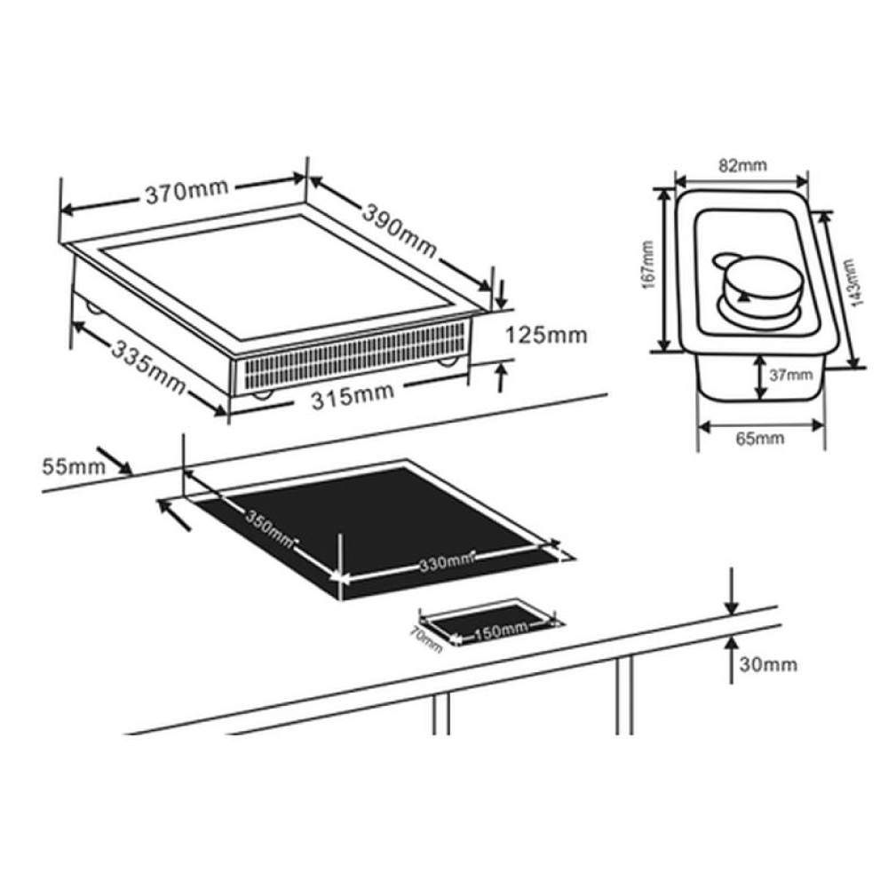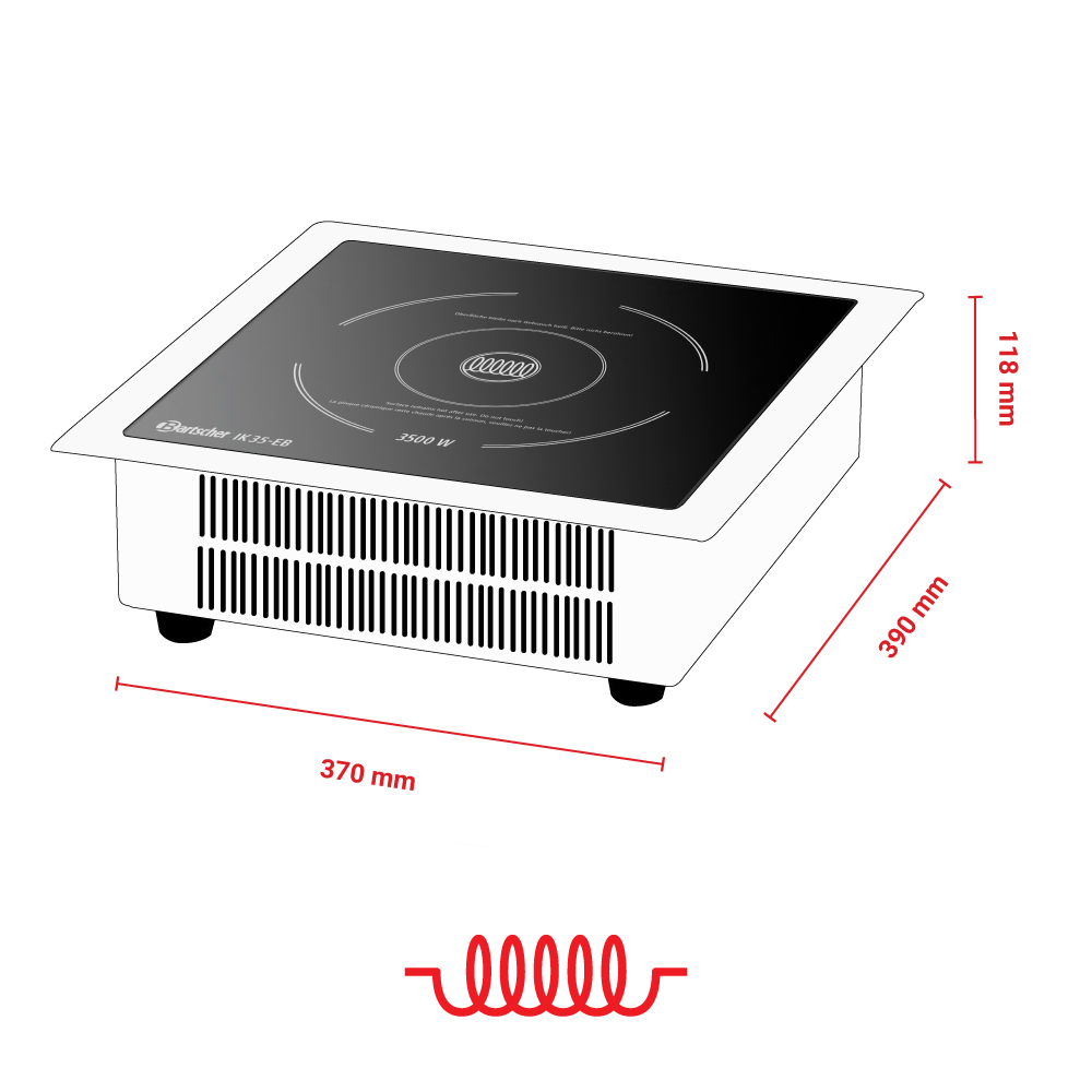 Διαστάσεις 370x390x118(h)mm Διάμετρος εστίας Ø 240mm Διαστάσεις γυάλινης επιφάνειας 310x330mm Ιδανική επιφάνεια ψησίματος min Ø 120mm / max Ø 260mm Θερμοκρασία 60 έως 240oC Ισχύς 3500Watt / 230V / 50-60Hz Στάδια ρυθμίσεων ισχύος 10 Στάδια ρυθμίσεων θερμοκρασίας 10 (ανά 20ºC) Καθαρό Βάρος 6,5 kg Ηλεκτρονική προστασία υπερθέρμανσης Διακόπτης On / Off Με δυνατότητα εντoίχισης Ξεχωριστό χειριστήριο ελέγχου με καλώδιο μήκους 80mm
