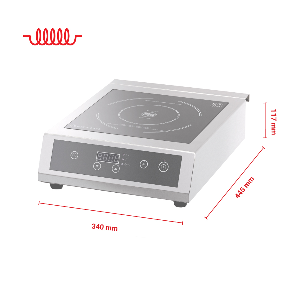 Διαστάσεις 340x445x117(h)mm Διάμετρος εστίας Ø 228mm Διαστάσεις γυάλινης επιφάνειας 285x285mm Ιδανική επιφάνεια ψησίματος min Ø 120mm / max Ø 240mm Θερμοκρασία 60 έως 240oC Ισχύς 3500Watt / 230V / 50-60Hz Στάδια ρυθμίσεων ισχύος 10 (500-3500 Watt) Στάδια ρυθμίσεων θερμοκρασίας 10 (ανά 20ºC) Ρύθμιση χρόνου 0 εώς 180 λέπτα Υλικό επιφάνειας ψησίματος Schott Ceran® Καθαρό Βάρος 7,5 kg Ηλεκτρονική προστασία υπερθέρμανσης Διακόπτης On / Off