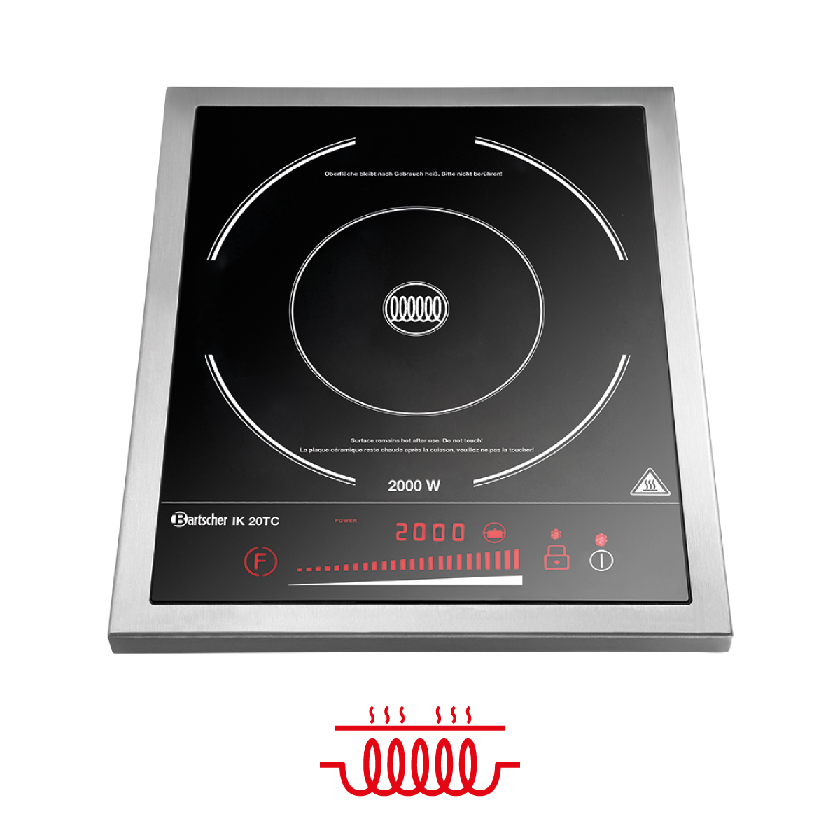 Διαστάσεις 330x400x63(h)mm Διάμετρος εστίας Ø 228mm Διαστάσεις γυάλινης επιφάνειας 285x345mm Ιδανική επιφάνεια ψησίματος min Ø 120mm / max Ø 260mm Θερμοκρασία 60 έως 240oC Ισχύς 2000Watt / 230V / 50Hz Στάδια ρυθμίσεων ισχύος 8 (500-2000 Watt) Στάδια ρυθμίσεων θερμοκρασίας 8 (60°C έως 20ºC) Ρύθμιση χρόνου 5 εώς 180 λέπτα Καθαρό Βάρος 3,4 kg Ηλεκτρονική προστασία υπερθέρμανσης Διακόπτης On / Off Πληκτρο κλειδώματος (ασφάλεια για τα παιδιά) Δεν ενδείκνυται για συνεχή & εντατική επαγγελματική χρήση