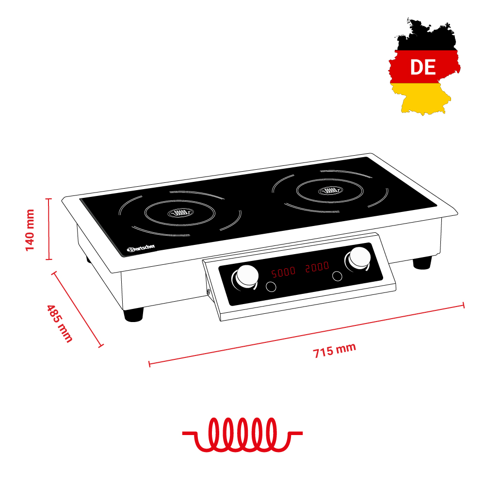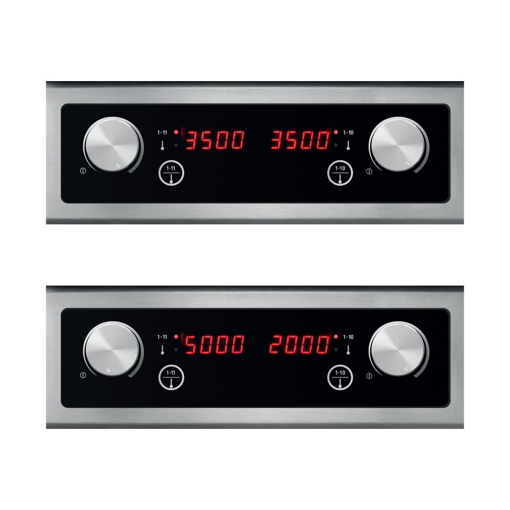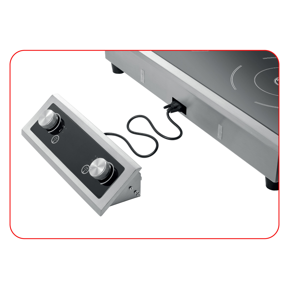 Διαστάσεις 715x485x140(h)mm Διάμετρος εστιών Ø 235mm Διαστάσεις γυάλινης επιφάνειας 645x315mm Ιδανική επιφάνεια ψησίματος min Ø 120mm / max Ø 260mm Θερμοκρασία 60°C έως 240°C Ισχύς 7000Watt / 400V / 50-60Hz Στάδια ρυθμίσεων ισχύος 11 Αριστερά & 10 Δεξιά Στάδια ρυθμίσεων θερμοκρασίας 10 (ανά 20°C) Καθαρό Βάρος 15,2 kg Ηλεκτρονική προστασία υπερθέρμανσης Με δυνατότητα εντοίχισης με ξεχωριστό χειριστήριο με μήκος καλωδίου 85cm
