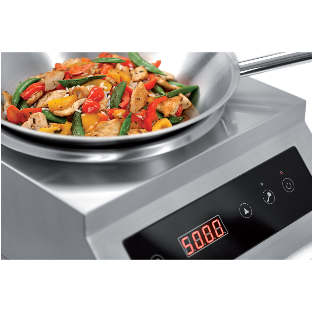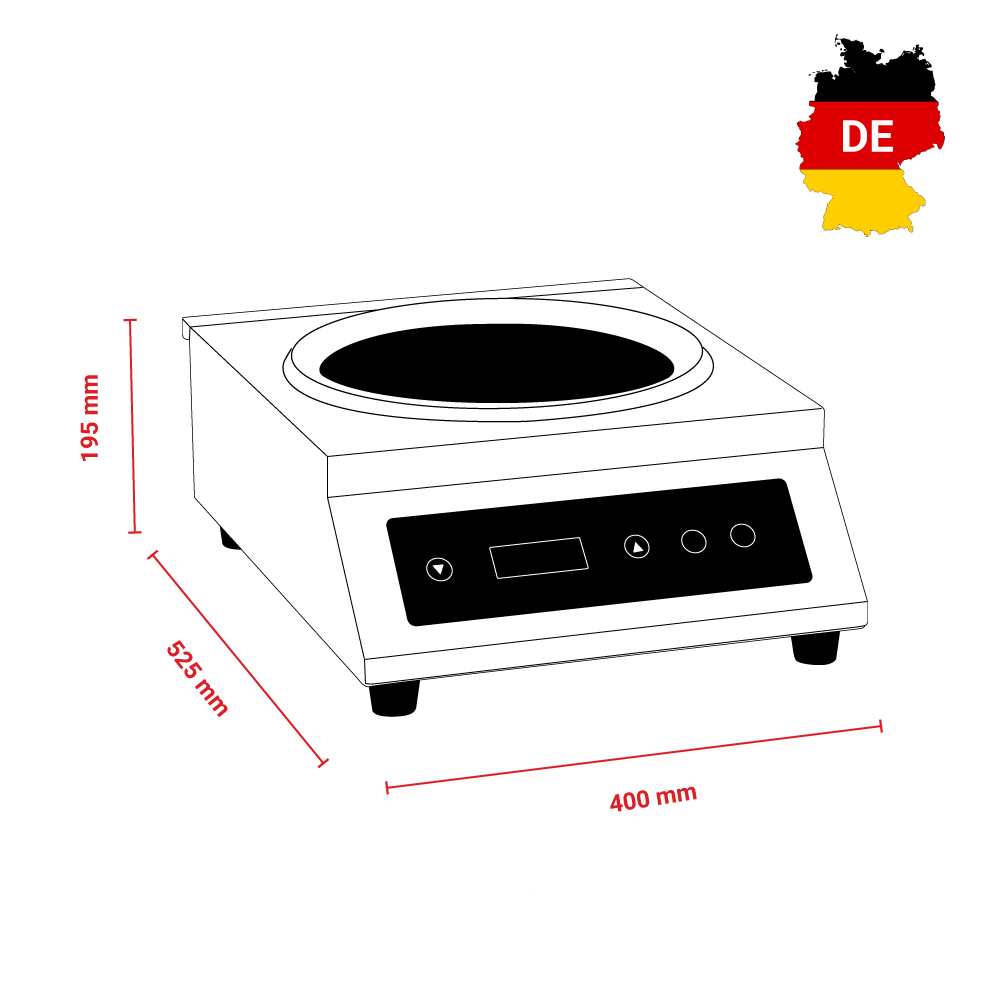 Διαστάσεις 400x525x195(h)mm Διάμετρος κοιλώματος εστίας Ø 280mm Ισχύς 5000Watt / 380V / 50Hz Στάδια ρυθμίσεων ισχύος 10 (500-3500 Watt) Καθαρό Βάρος 10,7 kg Διακόπτης On / Off Ηλεκτρονική προστασία υπερθέρμανσης Το τηγάνι WOK δεν συμπεριλαμβάνεται.