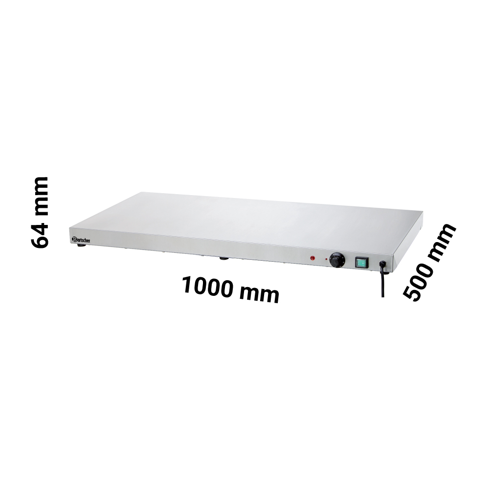 Διαστάσεις 1000x500x64(h)mm Διαστάσεις θερμαινόμενης επιφάνειας 1000x527mm Θερμοκρασία ρυθμιζόμενη 35°C - 95οC Ισχύς 600 Watt / 230V / 50-60Hz Βάρος 16 kg Κατασκευή Inox Ρύθμιση θερμοκρασίας θερμοστατικά Προστασία από υπερθέρμασνη Διακόπτης On/Off