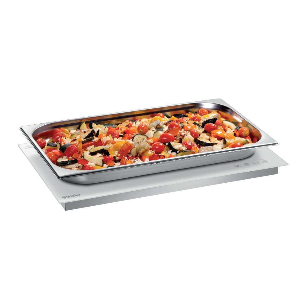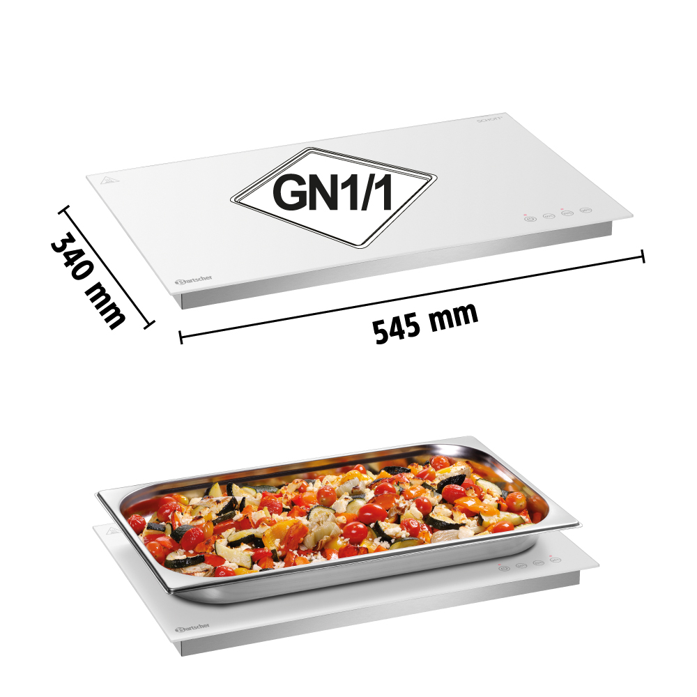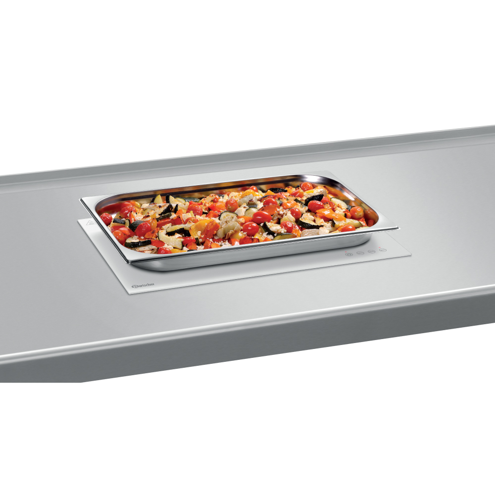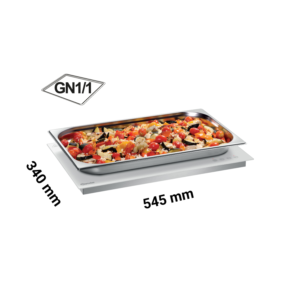 Διαστάσεις 545x340x45(h)mm Διαστάσεις θερμαινόμενης επιφάνειας 520x270mm Θερμοκρασία 50°C - 95οC Βαθμίδες θερμοκρασίας 3 (50|75|95ºC) Ισχύς 230 Watt / 230V / 50-60Hz Υλικό επιφάνειας Schott Ceran® Βάρος 2.8 kg Κατασκευή Inox Κατάλληλο για GN Με δυνατότητα εντοίχισης Διακόπτης On/Off