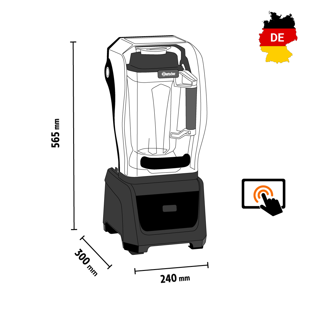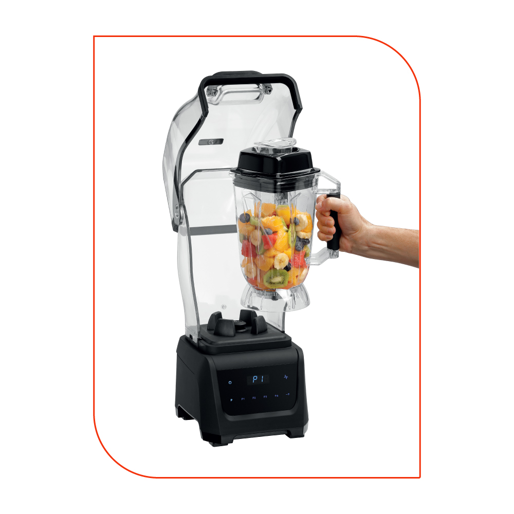 Διαστάσεις 240x270x570(h)mm Ισχύς 1,68 KWatt, 230V / 50Hz Μέγ. αριθμός στροφών ανά λεπτό 28.000 Χωρητικότητα κανάτας 2.875 lt Ποσότητα πλήρωσης 2.5 lt Λεπίδες 6 Inox Βάρος 9 kg Kατασκευή ABS & διάφανο πλαστικό Κάλυμμα ηχοπροστασίας (αφαιρούμενο) Λειτουργία παλμού Διακόπτης ON/OFF Διακόπτης ασφαλείας στο δοχείο / καπάκι Ρυθμιζόμενα αντιολισθητικά ποδαράκια Προστασία υπερθέρμανσης Ρυθμιστής ταχύτητας αδιαβάθμητα Συμπεριλαμβάνεται 1 εξάρτημα ώθησης.