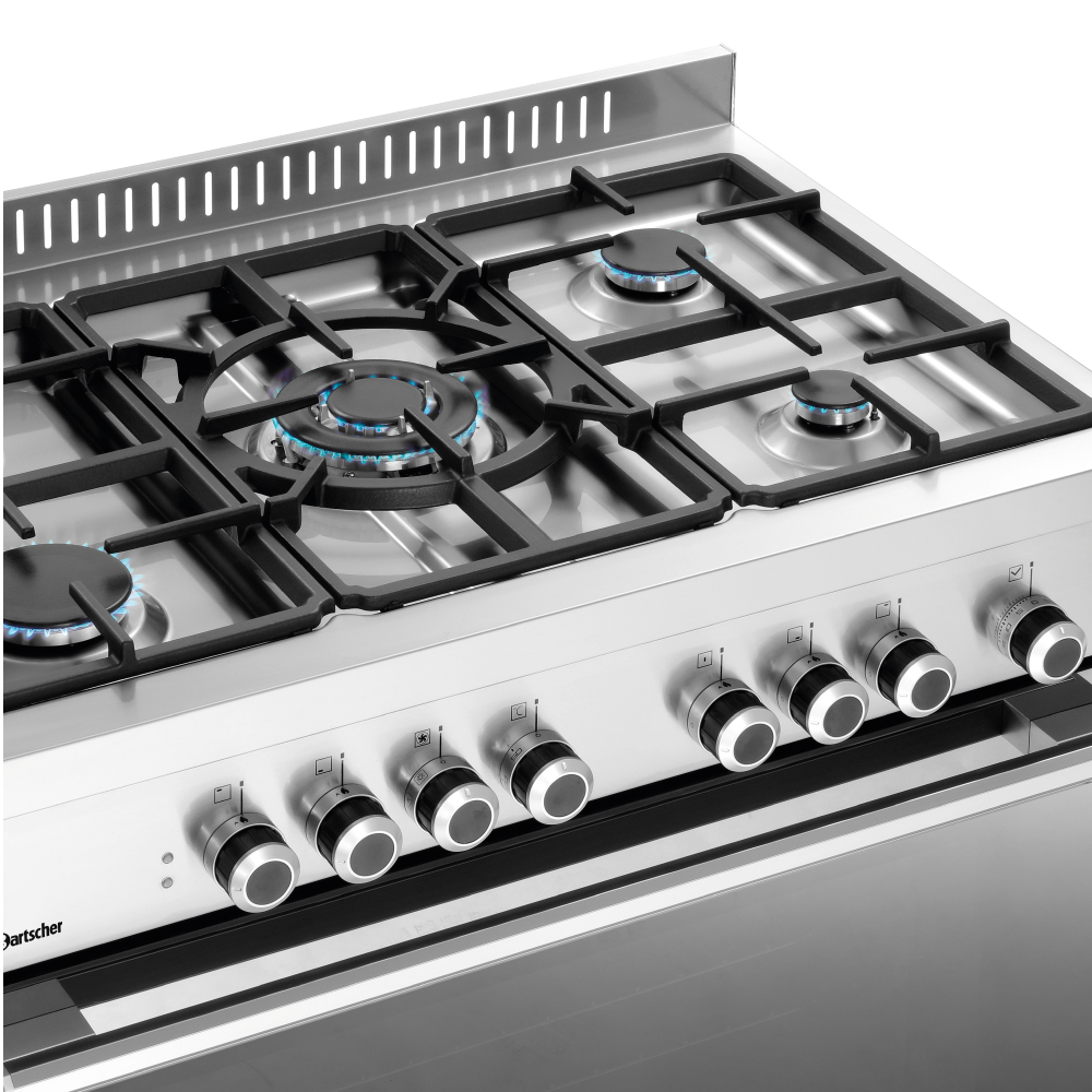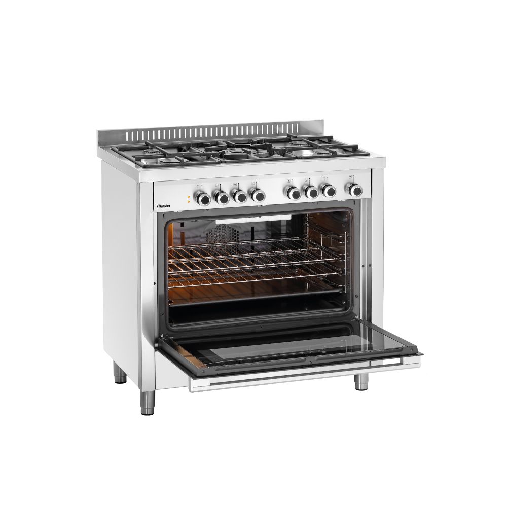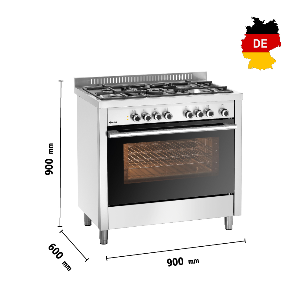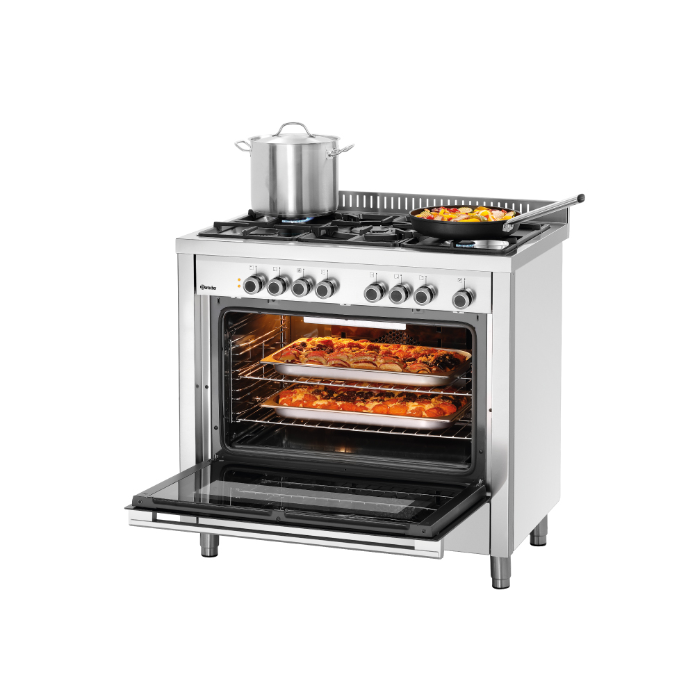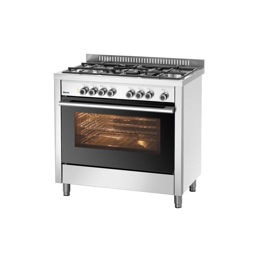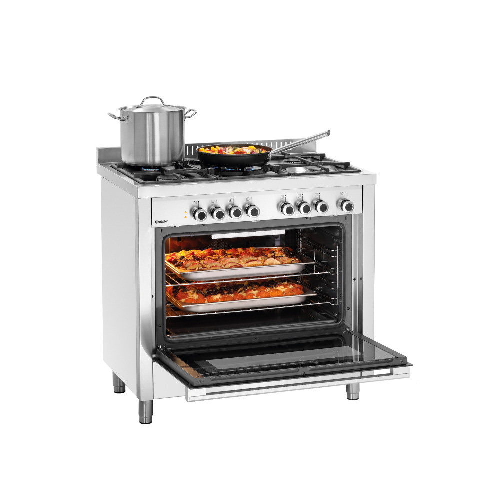 Διαστάσεις 900x600x900(h)mm Διαστάσεις φούρνου 690x400x340(h)mm Διαστάσεις εστιών 4x(230x270mm)+1x(Ø350mm) Διαστάσεις συρταριού (κάτω απο το φούρνο) 660x450x120(h)mm Θερμοκρασία φούρνου 50 - 250 °C Συνολικη Ισχύς 11.3 KWatt / 230V / 50-60Hz Ισχύς εστιών (1x1)+(2x1.75)+(1x3)+(1x3.8) KWatt Ισχύς φούρνου 2.5 Kwatt Αριθμός υποδοχών φούρνου 4 Απόσταση ανάμεσα στις υποδοχές 70 mm Χρονομετρήτης φούρνου 5-55 min Βάρος 91 Κg Λειτουργίες φούρνου : Κυκλοθερμικό / Grill / Grill + Άνω αντίσταση / Grill + Άνω αντίσταση + Ανεμιστήρας / Άνω + Κάτω Αντίσταση / Κάτω Αντίσταση + Ανεμιστήρας / Απόψυξη Διπλό τζάμι πόρτας Εσωτερικός φωτισμός φούρνου Παρέχονται ακροφύσια προπανίου (50mbar) & φυσικού αερίου (20mbar) Συμπεριλαμβάνονται : 1 ταψί ψησίματος & 2 σχάρες