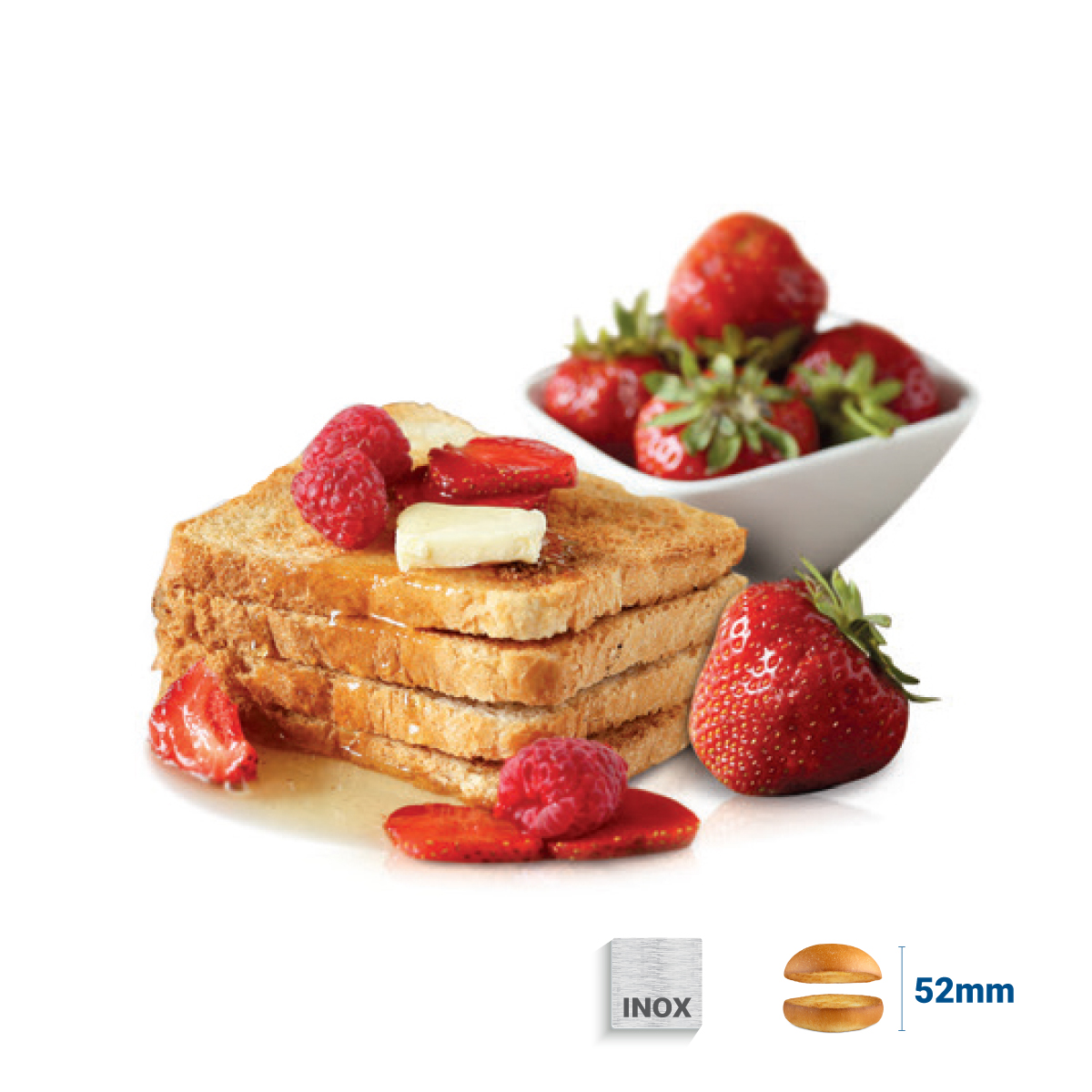 Διαστάσεις 350x410x390(h)mm Ισχύς 2,1 ΚWatt, 220-240V / 50-60Hz Μήκος αλυσίδας 25 cm Χωρητικότητα αλυσίδας 2 φέτες Παραγωγή/h 600 φέτες Μέγιστο ύψος φόρτωσης 5.2 cm Έξοδοι Μόνο εμπρός Κωδικός προϊόντος 18021 Ξεχωριστή ρύθμιση θερμοκρασίας πάνω & κάτω αντίστασης Αποσπώμενο & πλενόμενο συρτάρι Ρυθμιζόμενη ταχύτητα «αλυσίδας» Επιλογέας για ρύθμιση λειτουργίας πάνω-κάτω ή μόνο κάτω Ανοξείδωτες αντιστάσεις Ιδανική για πρωινούς μπουφέδες ξενοδοχείων