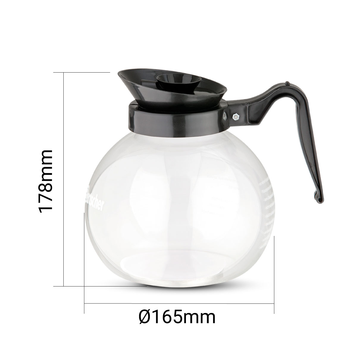 Διαστάσεις 160x200x178(h)mm Διάμετρος κανάτας Ø 165 mm Χωρητικότητα 1,8 lt Υλικό κατασκευής Γυαλί & πλαστικό Βάρος 0,3 kg Κατάλληλη για τους κωδικόυς : A190053 & A190105
