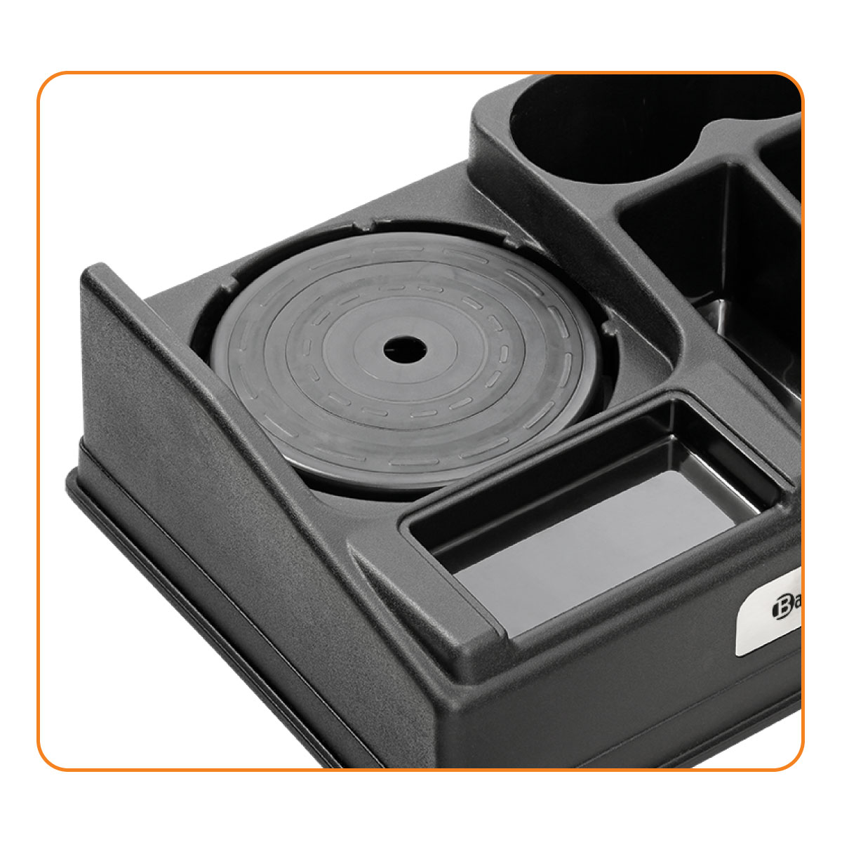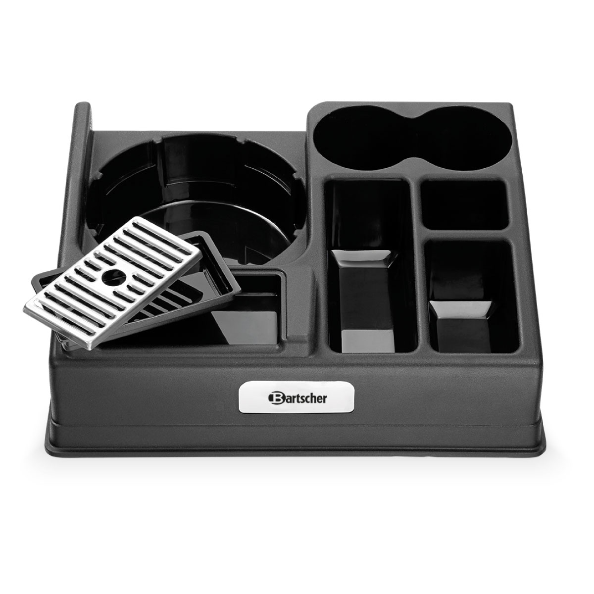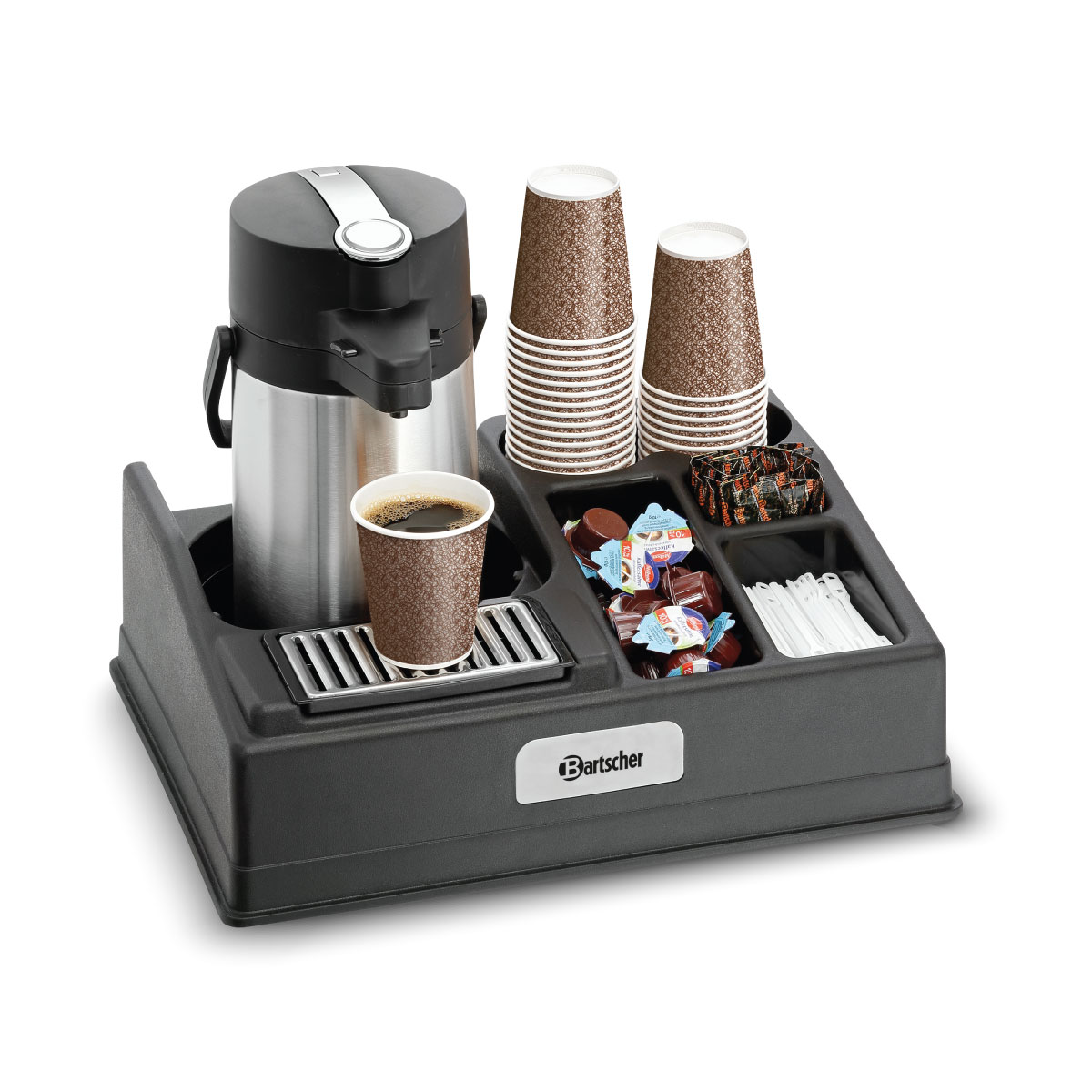 Διαστάσεις 440x340x145(h)mm Μέγιστη διαμέτρος κανάτας εώς 190 mm Υλικό Πλαστικό Βάρος 1.15 Kg Κωδικός Προϊόντος 190153 Αποτελείται απο 5 τμήματα (για πλαστικά ποτήρια καφε, ζάχαρη, γάλα, αναδευτήρες) Προσαρμοσμένο ύψος βάσης ποτηριού ανάλογα με την χρήση του θερμό Συμπεριλαμβάνονται 1 συλλέκτης υγρών & 1 πλαστικό ένθετο Δεν συμπεριλαμβάνεται η κανάτα