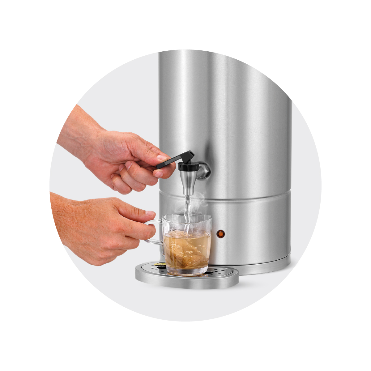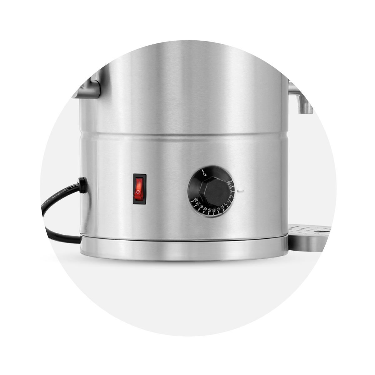 Διαστάσεις 305x350x490(h)mm Θερμοκρασία 30 - 95oC Ισχύς 2,8 ΚWatt, 230V / 50-60Ηz Χωρητικότητα 9 lt Βάρος 4,6 kg Κωδικός προϊόντος 200073 Inox σώμα και καπάκι Δείκτης πλήρωσης Με διπλά τοιχώματα Θερμοστάτης ασφαλείας Αφαιρούμενος συλλεκτης υγρών Αναδιπλούμενες λαβές.