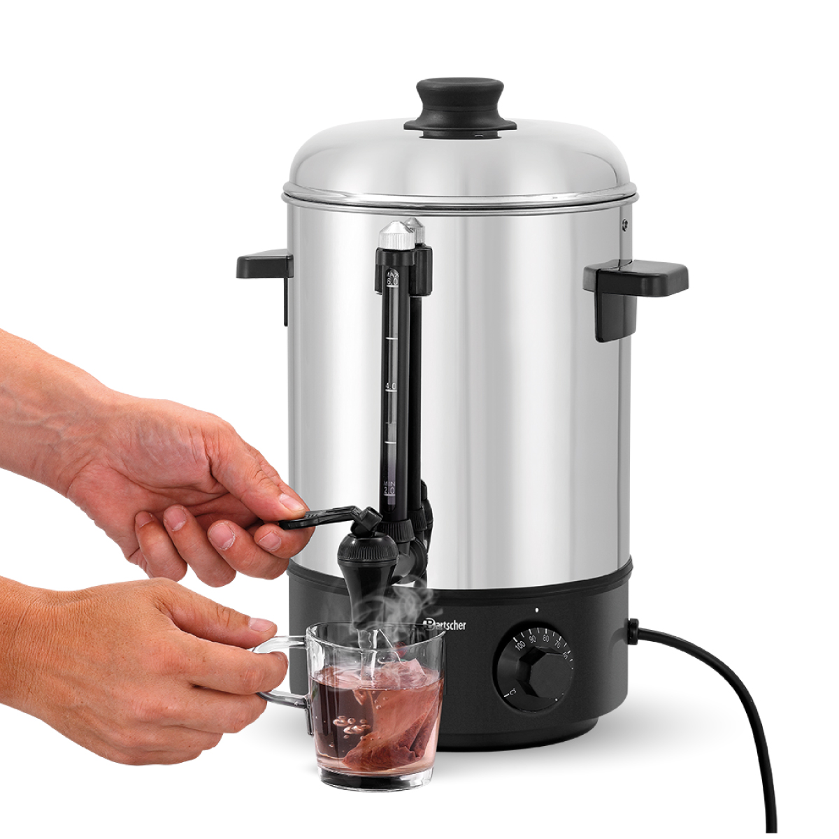 Διαστάσεις 280x290x385(h)mm Θερμοκρασία 30 - 100oC Ισχύς 1.8 ΚWatt, 230V / 50Ηz Χωρητικότητα 6 lt Βάρος 1.8 kg Κωδικός προϊόντος 200085 Θερμοστάτης ασφάλειας Ένδειξη στάθμης πλήρωσης Διακόπτης On / Off