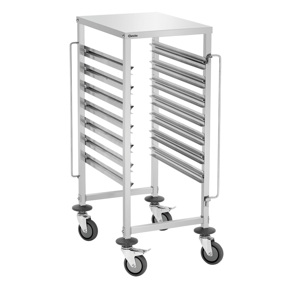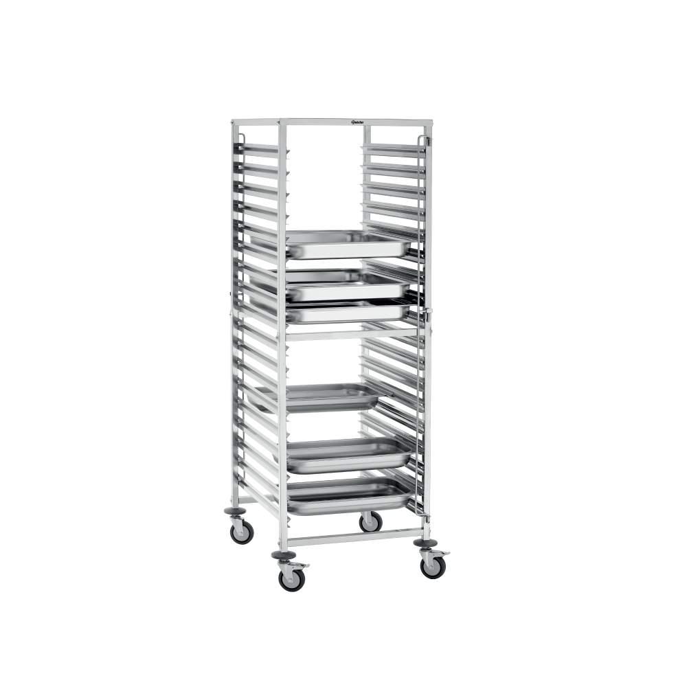 Trolley προτύπων εστίασης (AGN700-1/1) , 7 επιπέδων, Bartscher Γερμανίας. Καρότσι μεταφοράς με 7 θέσεις τοποθέτησης και πρόσθετη ωφέλιμη επιφάνεια τοποθέτησης. Η ασφάλεια των δοχείων και από τις δύο πλευρές εμποδίζει την ολίσθηση των δοχείων.