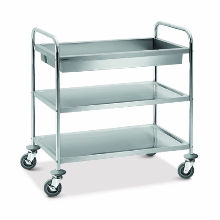 Διαστάσεις 450x620x1010(h)mm Διαστάσεις επιπέδου 390x555mm Χωρητικότητα 7 υποδοχές Μέγιστο βάρος μεταφερόμενου φορτίου 60 kg Μέγιστη φέρουσα ικανότητα επιφάνειας τοποθέτησης 5 Kg Μέγιστη φέρουσα ικανότητα ανά συρταρωτή υποδόχη 8 Kg Απόσταση μεταξύ των επιπέδων 80 mm Ρόδες 4 ρόδες πολλαπλής κατεύθυνσης Ø100mm, οι 2 με φρένο Βάρος καροτσιού χωρίς φορτίο 13 Kg Κατασκευή Inox Απαιτείται συναρμολόγηση από τον χρήστη Από μια ασφάλεια δοχείων στην μπροστινή & στην πίσω πλευρά Δεν περιλαμβάνονται λαμαρίνες ή ταψιά.