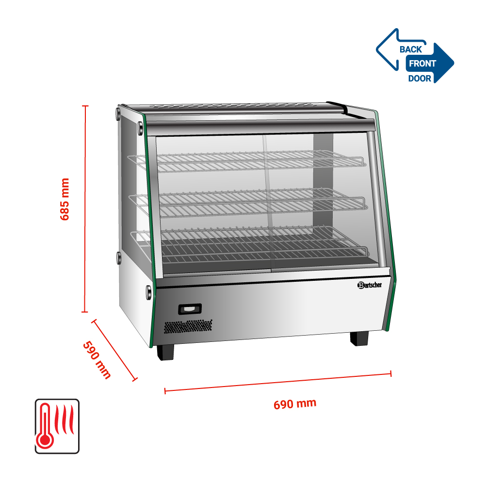 Εξωτερικές διαστάσεις 690x590x685(h)mm Χωρητικότητα 120 lt Θερμοκρασία +30ºC / +90 οC Ισχύς 1100Watt / 230V / 50Hz Φωτισμός LED Σχάρες 3 (630x335|370|400mm) Βάρος 36 Kg 2 συρόμενες γυάλινες πόρτες εμπρός & 2 πίσω Αναλογικός θερμοστάτης - θερμόμετρο Λεκανάκι εφύγρανσης