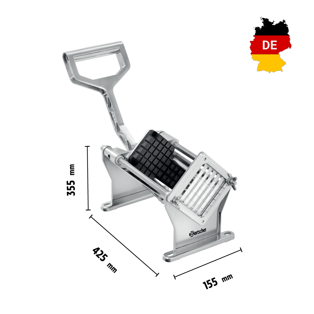 Διαστάσεις 155x425x335(h)mm Αριθμός μαχαιριών 4 Μαχαίρια Πατάτες για τηγάνισμα 6mm Πατάτες για τηγάνισμα 9mm Πατάτες για τηγάνισμα 13mm Πατάτες για φούρνο Υλικό συσκευής Inox & Πλαστικό Βάρος 2.64 Κg