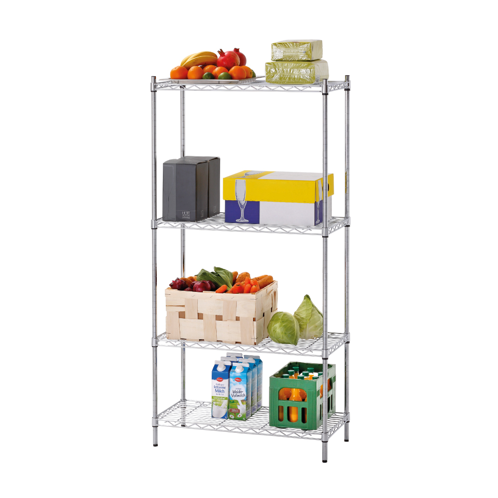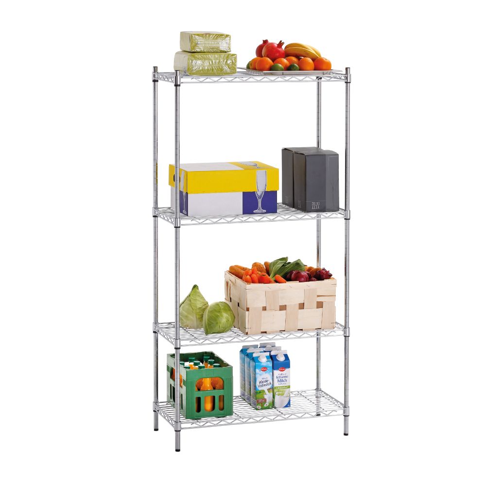 Διαστάσεις 750x350x1520(h)mm Διαστάσεις ραφιού 734x334mm Ράφια 4 Ορθοστάτες 4 γωνιακοί (σύστημα σύνδεσης) Μέγιστο βάρος ομοιόμορφα κατανεμημένο 150 Kg Μέγιστο βάρος ανά ράφι 37,5 Kg Βάρος 10,3 kg Κατασκευή χρωμίου 4 ράφια με ρύθμιση ύψους Απαιτείται συναρμολόγηση από τον χρήστη