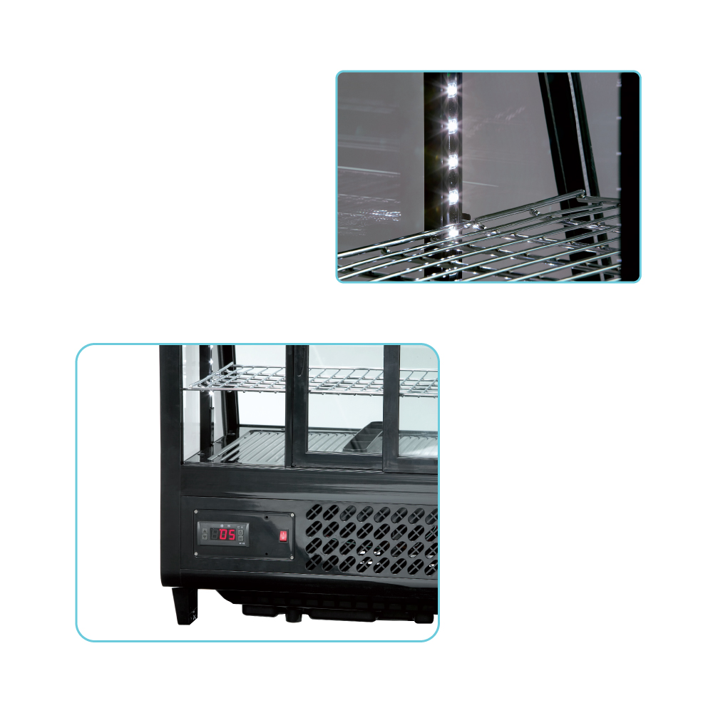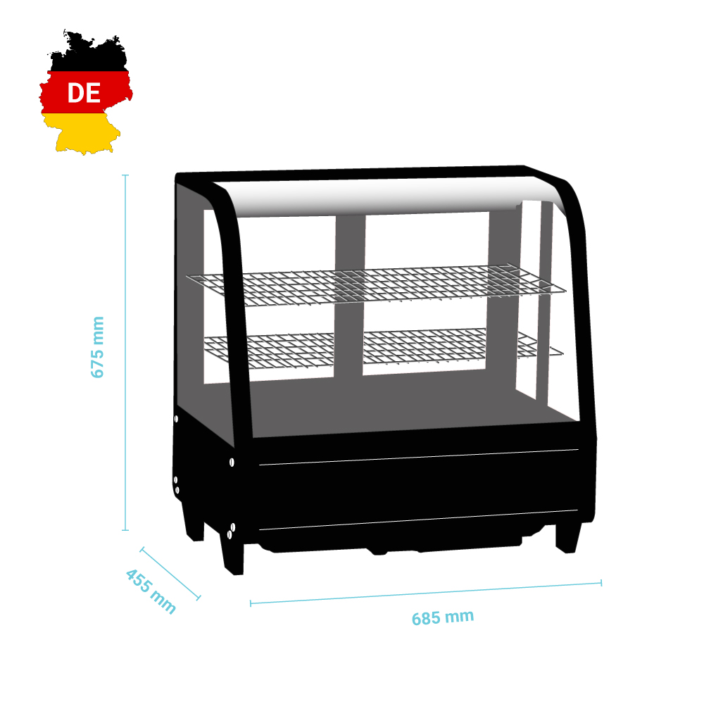 Εξωτερικές διαστάσεις 685x455x675(h)mm Χωρητικότητα 100 lt Θερμοκρασία +2ºC / +12 οC Ισχύς 160Watt / 230V / 50Hz Ψύξη Βεβιασμένη Απόψυξη Αυτόματη Ψυκτικό υγρό R600a Επίπεδα προβολής 3 Σχάρες 2 (600x300mm) Φωτισμός LED Κλιματική κλάση 4 (30°C & 55%RH) Βάρος 40,3 Kg Συρόμενες γυάλινες πόρτες πίσω Ρυθμιζόμενες σχάρες καθ΄ ύψος Διακόπτης ON/OFF