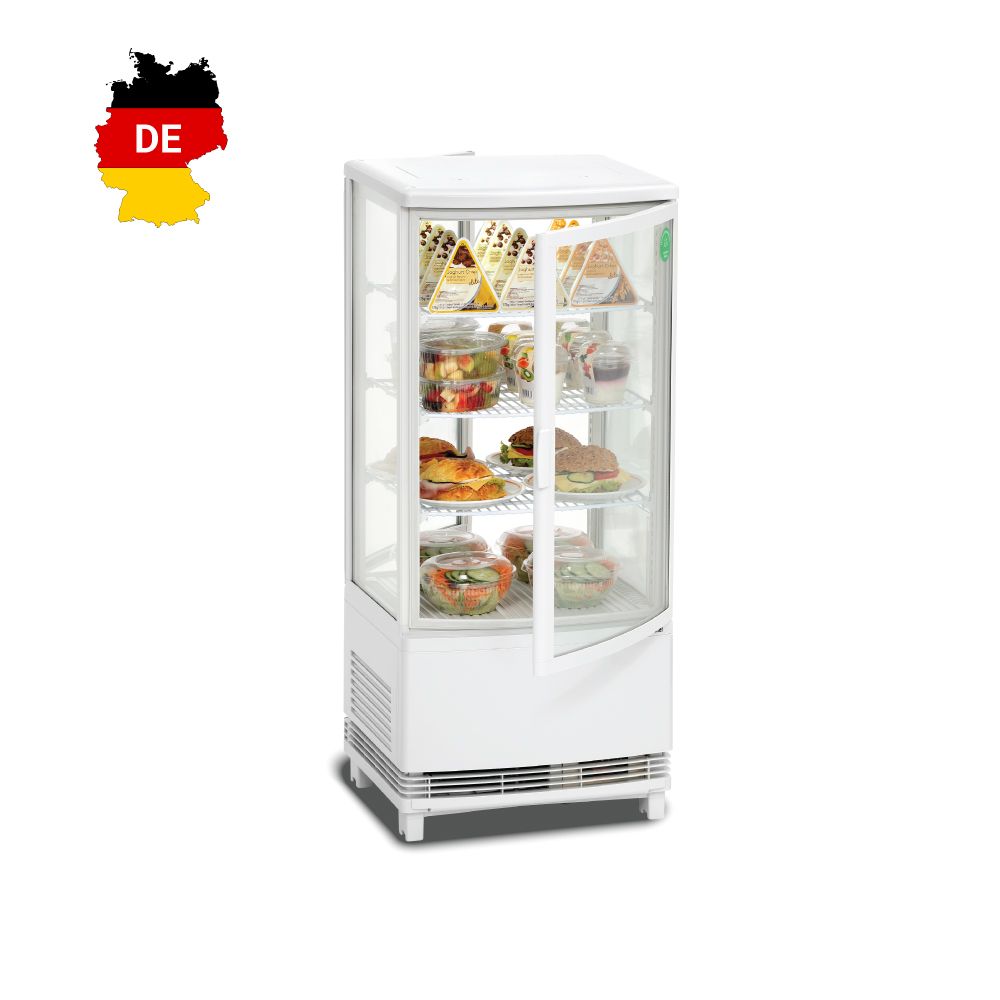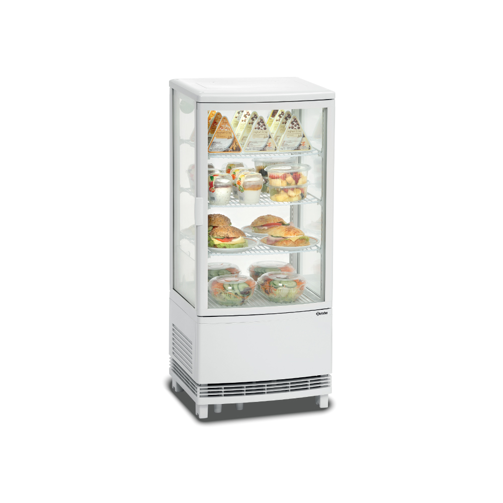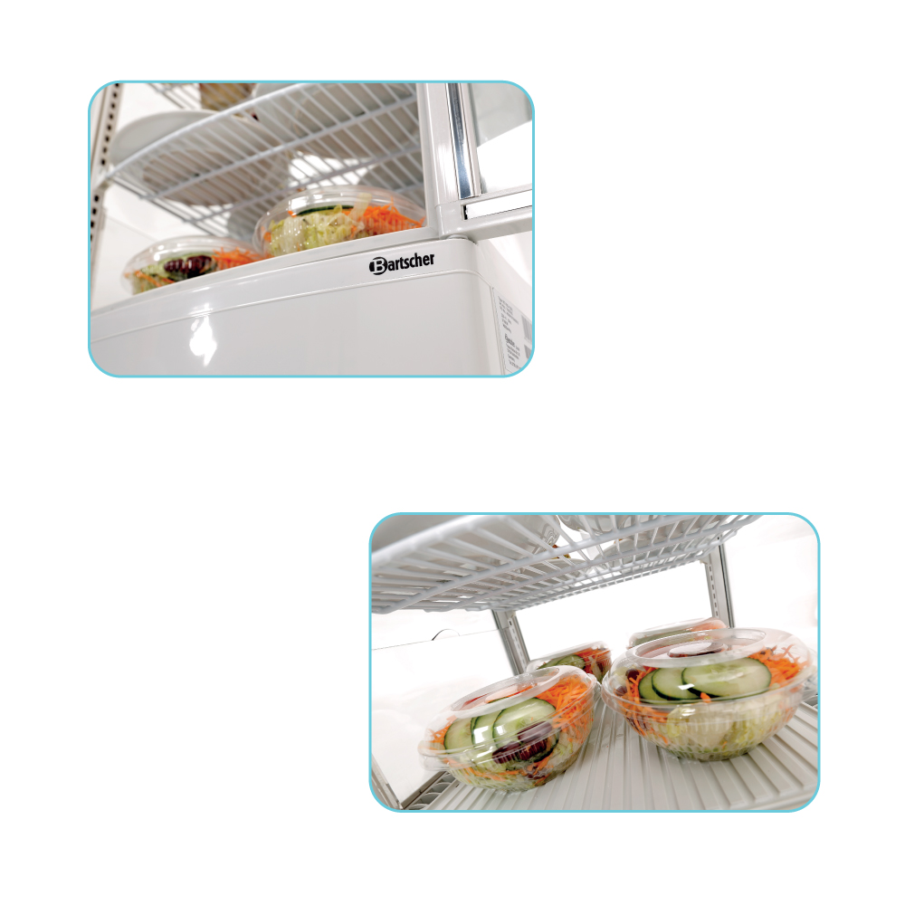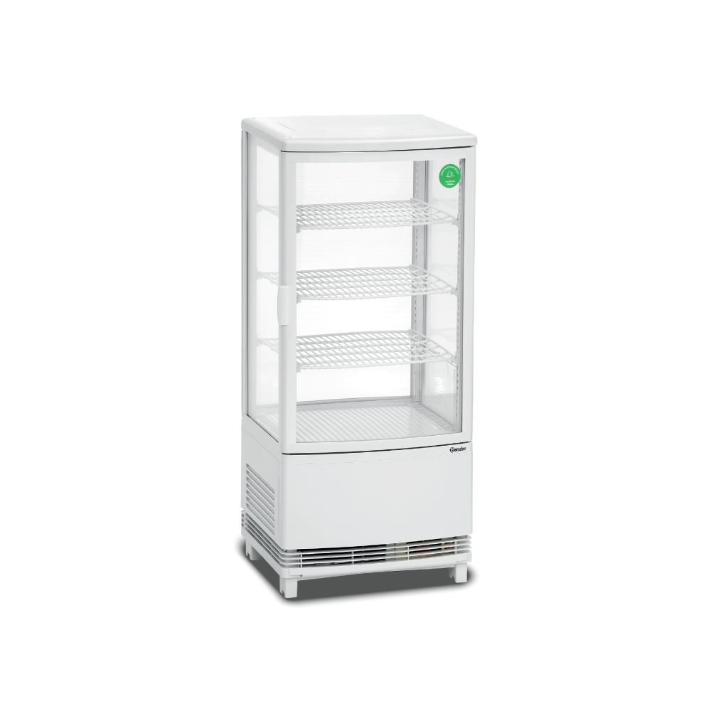 'Eξωτερικές διαστάσεις 425x435x980(h)mm Χωρητικότητα 86 lt Θερμοκρασία +2 / +12 οC Ισχύς 180Watt / 230V /50Hz Ψύξη Βεβιασμένη Απόψυξη Αυτόματη Ψυκτικό υγρό R600a Επίπεδα προβολής 4 Σχάρες 3 (357x315mm) Φωτισμός LED Κλιματική κλάση 4 (30°C & 55%RH) Βάρος 36,5 Kg Ανοιγόμενες κουρμπαριστές πόρτες εμπρός & πίσω Ρυθμιζόμενες καθ'' ύψος σχάρες Διακόπτης ON/OFF'