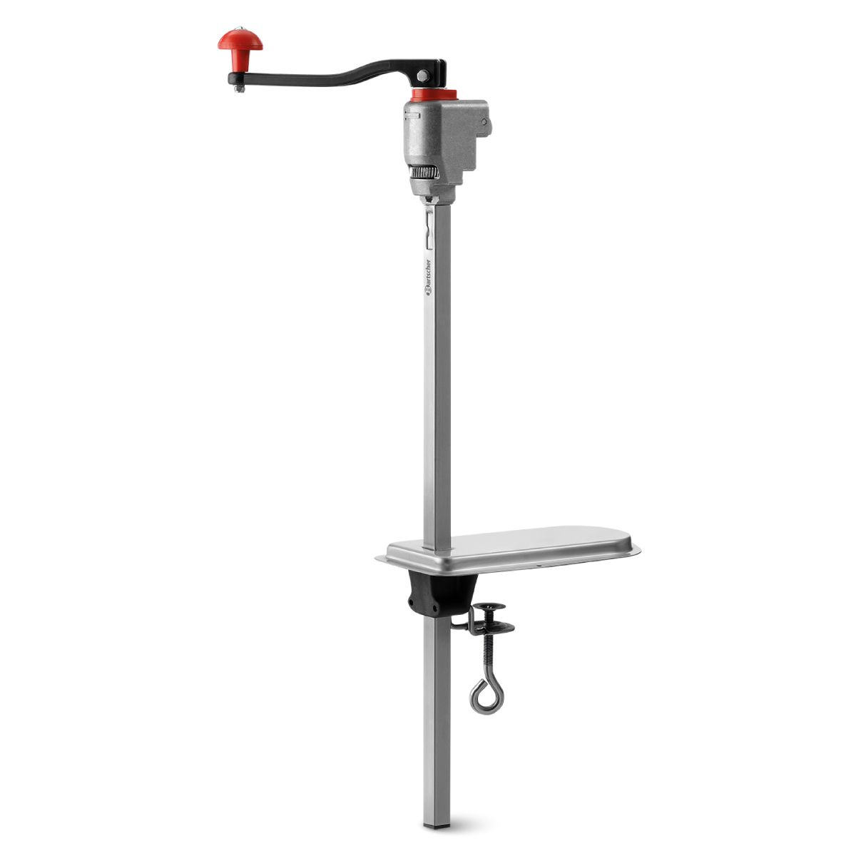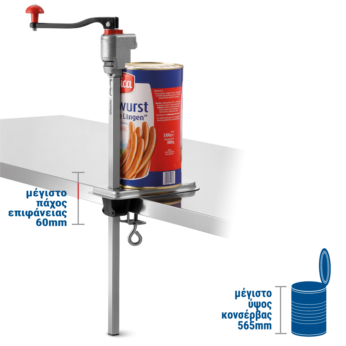 Διαστάσεις 125x290x780(h)mm Διαστάσεις επιφάνειας τοποθέτησης 131x294mm Μέγιστο ύψος δοχείου 565 mm Μέγιστο πάχος πλάκας πάγκου 60 mm Βάρος 2.08 Kg Κωδικός Προϊόντος A120355 Στερέωση με σφιγκτήρες (έτοιμο για βιδωτή στερέωση) Μηχανισμός στρόφαλου με ελατηριωτό μηχανισμό Συμπεριλαμβάνονται : Μαχαίρι & Τροχός μεταφοράς Υλικό : Inox & πλαστικό