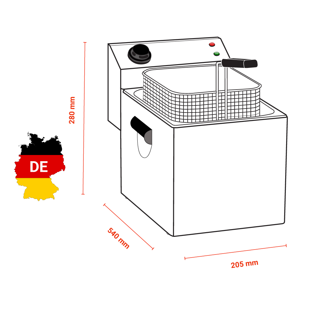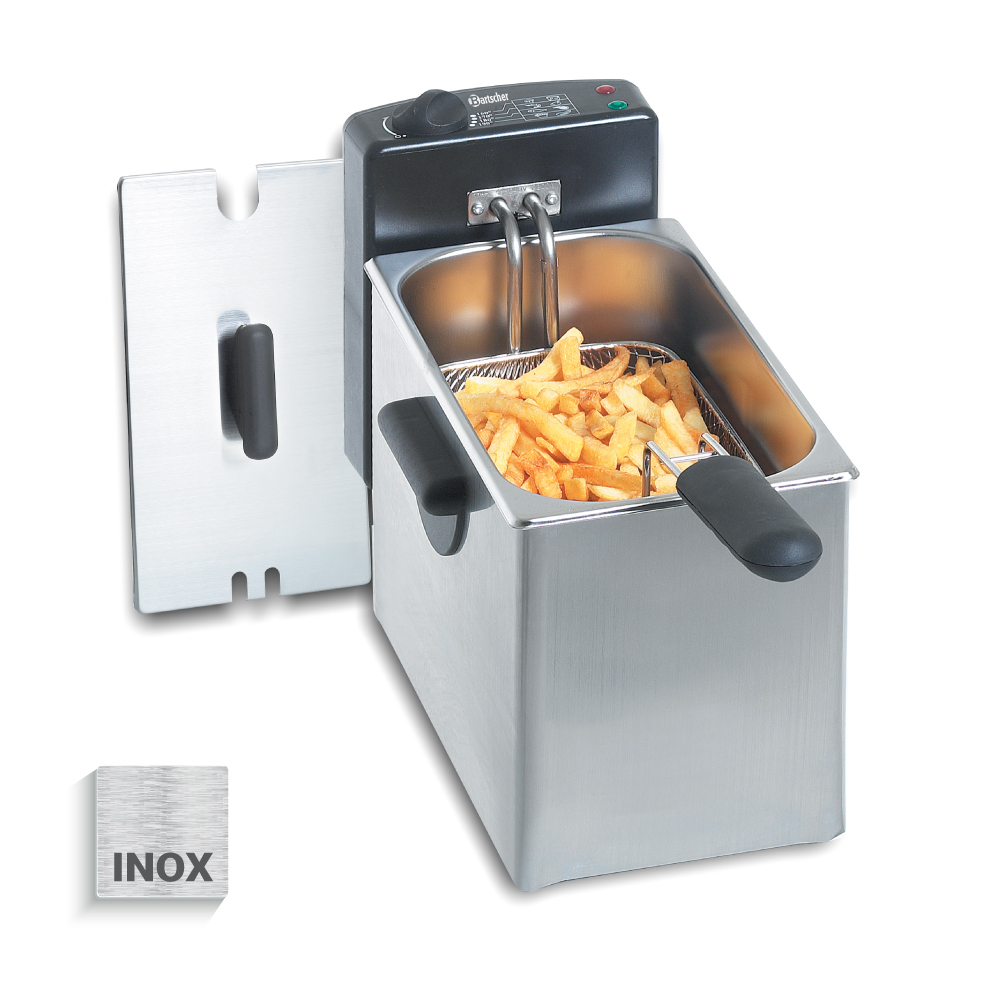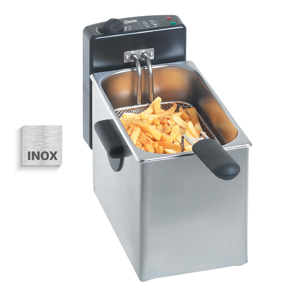 Διαστάσεις 205x540x280(h)mm Διαστάσεις κάδου 170x316x180(h)mm Χωρητικότητα κάδου 4 lt Θερμοκρασία ρυθμιζόμενη 60 - 190οC Ισχύς 2,2 ΚWatt, 230V / 50-60Hz Βάρος 3,3 kg Κωδικός Προϊόντος A165110 Δεν ενδείκνυται για συνεχή επαγγελματική χρήση Inox περίβλημα και καπάκι Πλαστικός πίνακας διακοπτών Θερμοστάτης ασφαλείας (για υπερθέρμανση) Περιλαμβάνει ένα καλάθι τηγανίσματος (κωδικός προϊόντος:165521)