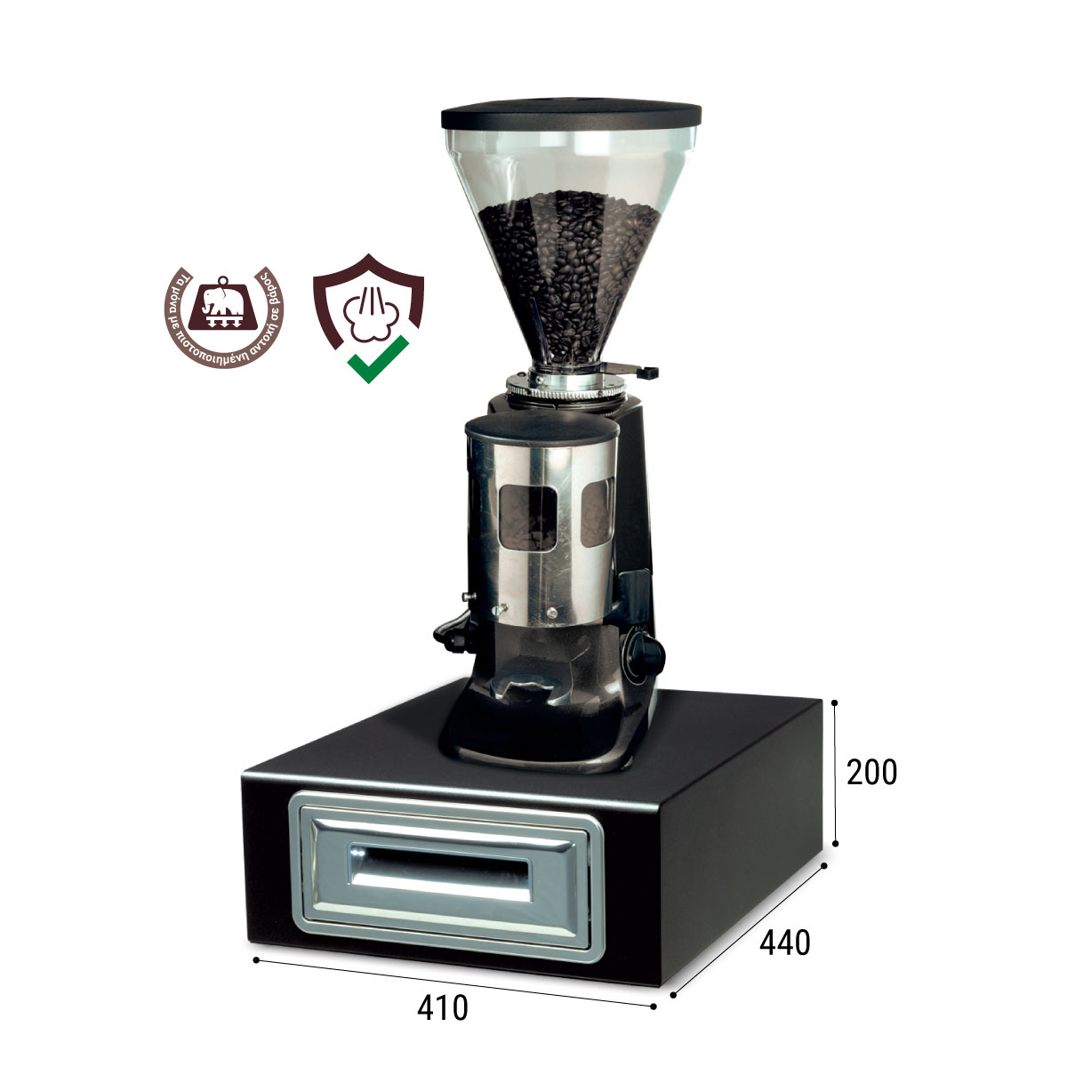 Διαστάσεις 410x440x200(h)mm Υλικό κατασκευής Inox 304 Περίβλημα από προπυλένιο για προστασία από τους ατμούς της μηχανής καφέ Περιλαμβάνει : Συρτάρι από ανοξείδωτο ατσάλι ΙΝΟΧ 304 , με μπάρα καφέ.
