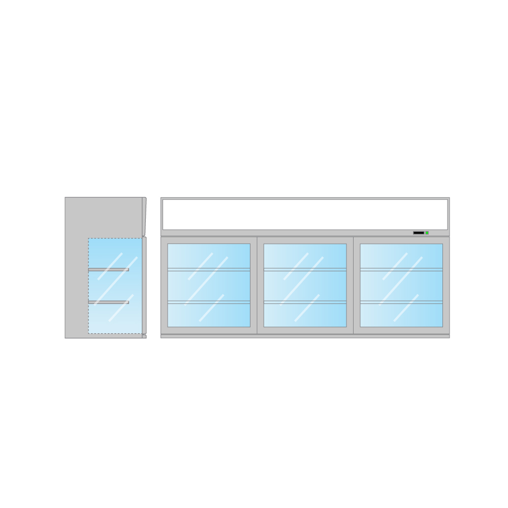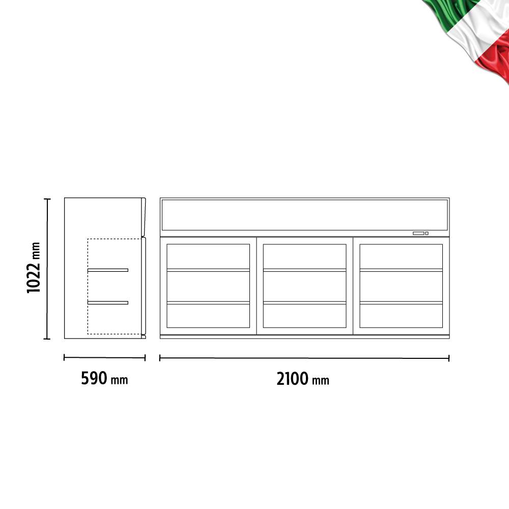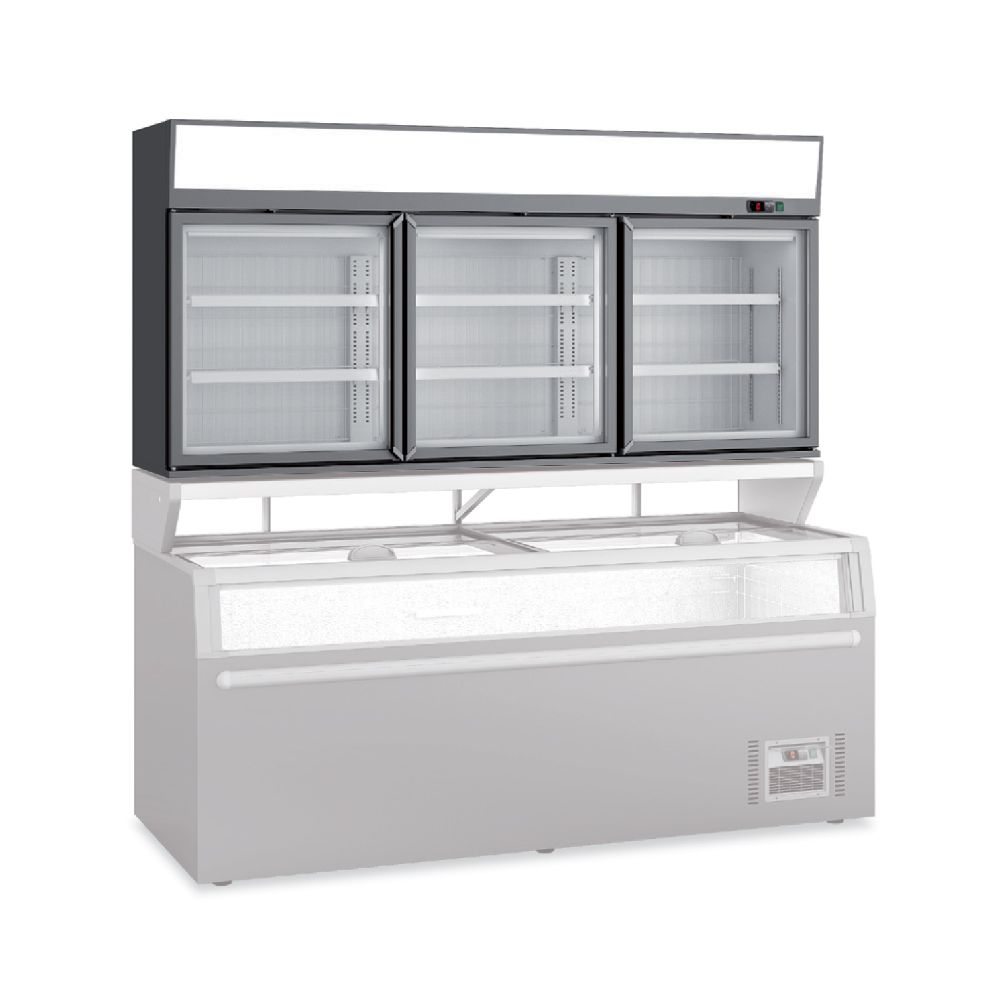 Εξωτερικές διαστάσεις 2100x590x1022(h)mm Εσωτερικές διαστάσεις 1980x390x645(h)mm Θερμοκρασία -18 / -22οC Ισχύς 820 Watt / 220-240V / 50Hz Ψύξη Στατική Απόψυξη Αυτόματη (Hot gas) Ψυκτικό υγρό R290 Κλιματική κλάση 3 (+25ºC & 60%RH) Χωρητικότητα 559 lt Ράφια 4 x (624x292mm) & 2 x (699x292mm) Φωτισμός LED Βάρος 203 kg 3 ανοιγόμενες πόρτες Ηλεκτρονικό/ς θερμοστάτης/θερμόμετρο