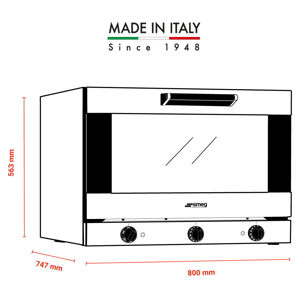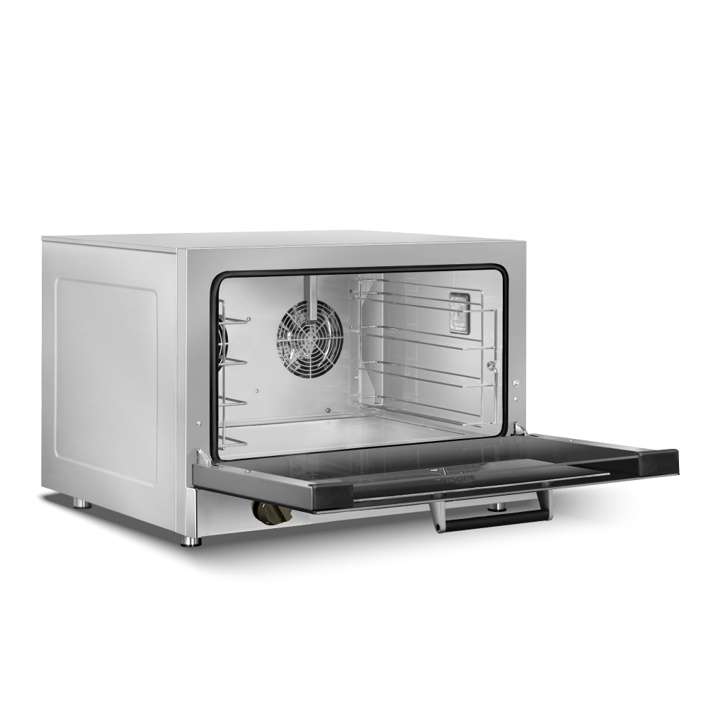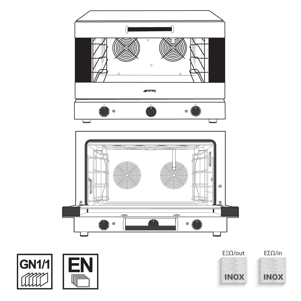 'Διαστάσεις 800x747x563(h)mm Χωρητικότητα 4 λαμαρίνες (600x400) ή GN 1/1 Απόσταση μεταξύ θέσεων 77 mm Θερμοστάτης 50°C - 270oC Χρονοδιακόπτης 1-60'' ρυθμιζόμενος & συνεχής Λειτουργίες Αερόθερμο ψήσιμο Αερόθερμο ψήσιμο & Υγραντήρας Ισχύς 6,9 KWatt/ 400V/ 3N / 50Hz Βάρος 58,6 Kg Υγραντήρας απ''ευθείας ψεκασμού INOX εξωτερικά Δύο ισχυροί ανεμιστήρες εναλλασσόμενης φοράς Aποσπώμενο & εύκολα καθαριζόμενο εσωτερικό τζάμι πόρτας Τα GN και οι λαμαρίνες δε συμπεριλαμβάνονται'