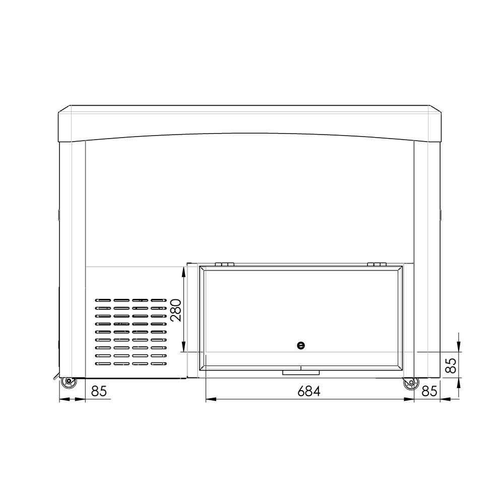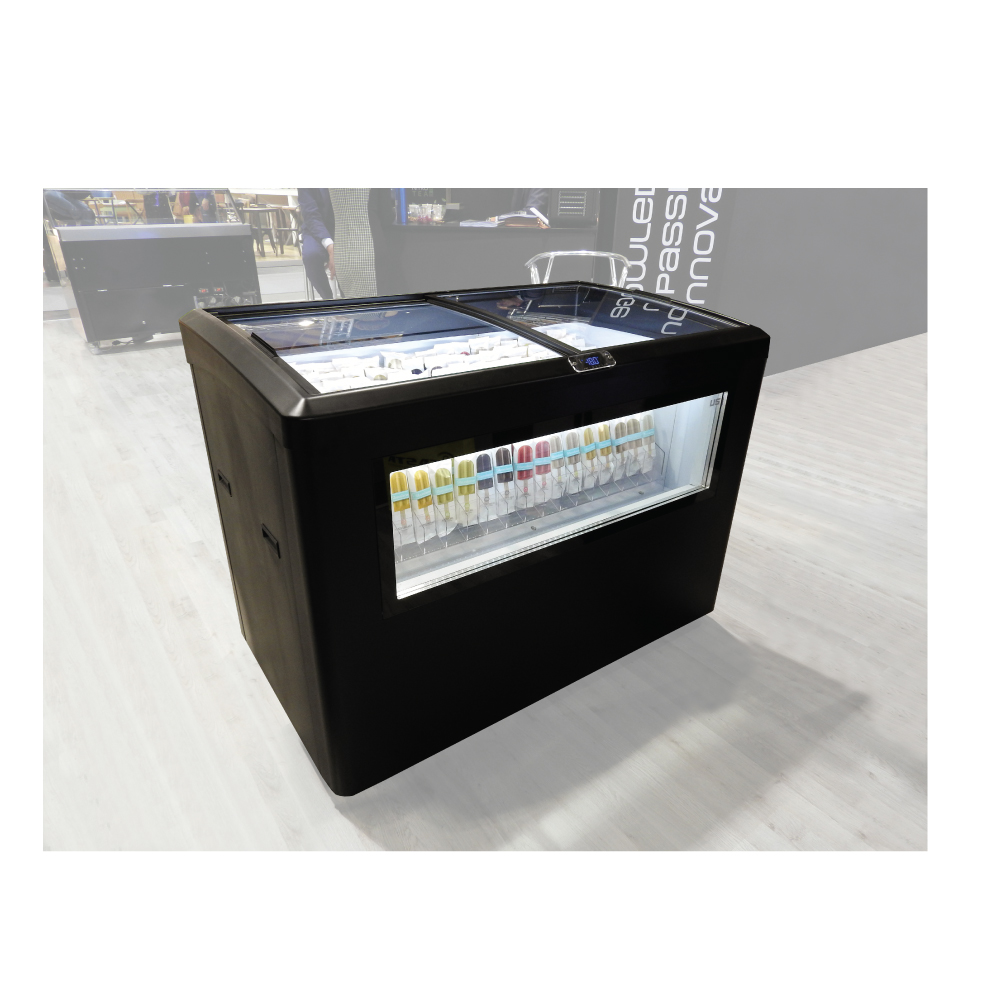 Διαστάσεις 1258x738x935(h)mm Χωρητικότητα 402 lt Ισχύς 440 W /230 V/ 50Hz Θερμοκρασία λειτουργίας -18 / -23 oC Ψύξη Στατική Απόψυξη Χειροκίνητη Φωτισμός LED Freon R290 Κλιματική κλάση 4 (30°C & 55%RH) Βάρος 116 Kg 4 ρόδες πολλαπλής κατεύθυνσης οι 2 με φρένο Ηλεκτρονικός Θερμοστάτης Ηλεκτρονικό Θερμόμετρο Περιλαμβάνεται βάση για ξυλάκια παγωτού