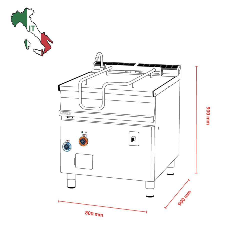 Διαστάσεις 800x900x900(h)mm Διαστάσεις κάδου 760x560x225(h)mm Χωρητικότητα 80 Lt Ισχύς 12,1Kw / 400V / 50Hz Βάρος 162 Κg Κωδικός Προϊόντος 09070836 Ρυθμιζόμενα πόδια