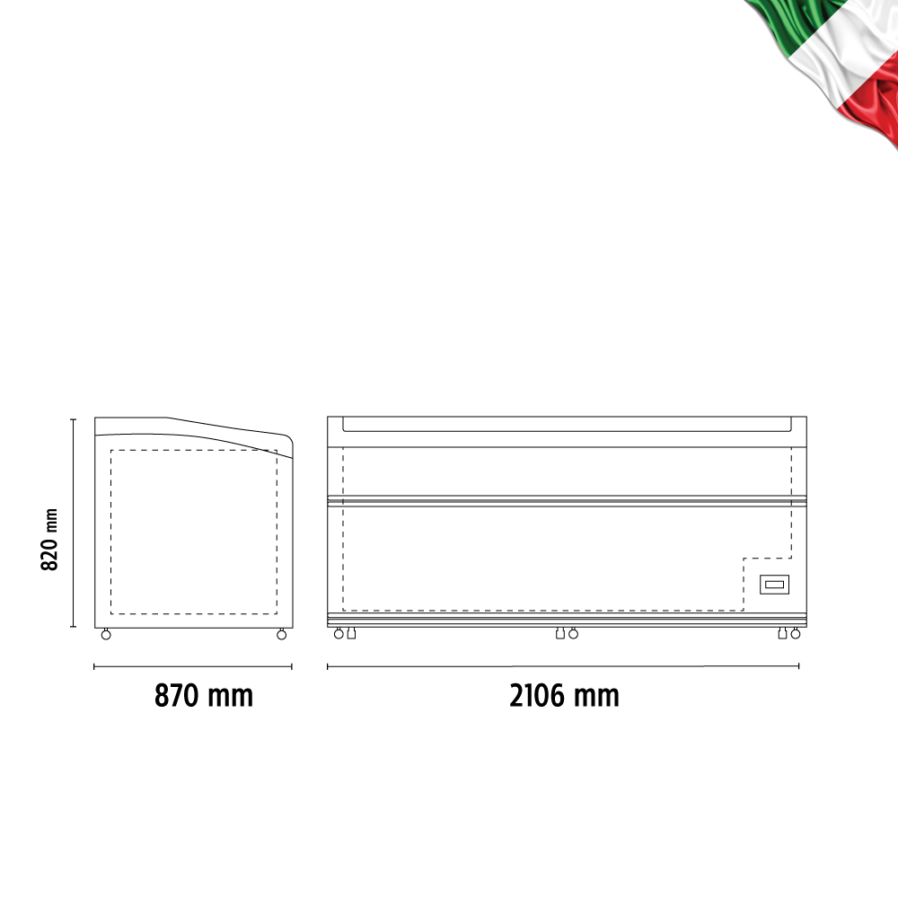 Εξωτερικές διαστάσεις 2106x870x925(h)mm Εσωτερικές διαστάσεις 1970x730x720(h)mm Χωρητικότητα 912 lt Ισχύς 516 Watt / 220-240V/ 50Hz Θερμοκρασία κατάψυξης -23°C / -18 oC Ψύξη Στατική Απόψυξη Αυτόματη Freon R290 Κλιματική κλάση 3 (25°C & 60%RH) Φωτισμός LED Βάρος 171 Kg 6 ποδαράκια & 6 ροδάκια Ηλεκτρονικός Θερμοστάτης -Ηλεκτρονικό Θερμόμετρο