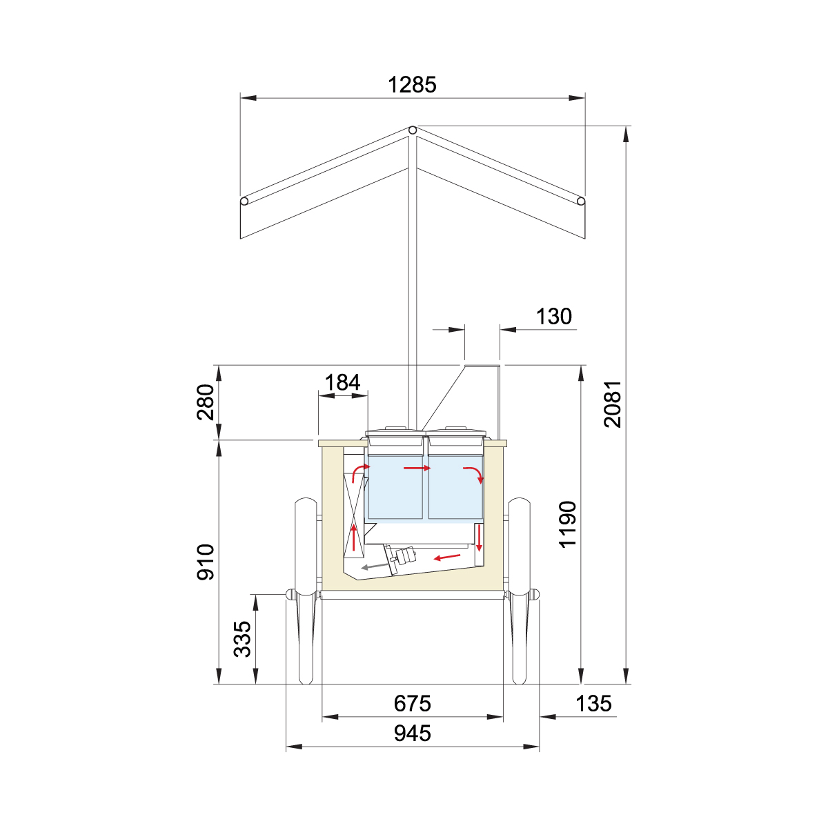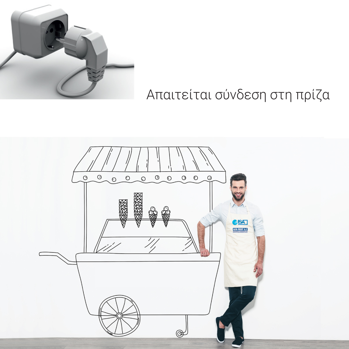 Εξωτερικές διαστάσεις 2000x1285x2081(h)mm Χωρητικότητα 8 καραπίνες (7lt) Θερμοκρασία -16ºC / -14ºC Ισχύς 470Watt / 230V / 50Hz Ψύξη Βεβιασμένη Απόψυξη Αυτόματη Hot gas Ψυκτικό υγρό R290 Συμπιεστής 1 (κλειστού τύπου) Φωτισμός LED Κλιματική κλάση 4 (30oC & 55%RH) Βάρος 205 Kg Κρύσταλλο ασφαλείας επίπεδο Τέντα ηλιοπροστασίας 2 ακτινωτοί τροχοί & ροδάκι βαρέος τύπου πολλαπλής κατεύθυνσης Κατάλληλο για καραπίνες (7lt) Συμπεριλαμβάνεται λεκανάκι με βρυσάκι για τις κουτάλες και δοχεία νερού. ΛΕΙΤΟΥΡΓΕΙ ΠΑΝΤΑ ΣΥΝΔΕΔΕΜΕΝΟ ΣΤΟ ΡΕΥΜΑ ΟΙ ΚΑΡΑΠΙΝΕΣ ΔΕΝ ΣΥΜΠΕΡΙΛΑΜΒΑΝΟΝΤΑΙ