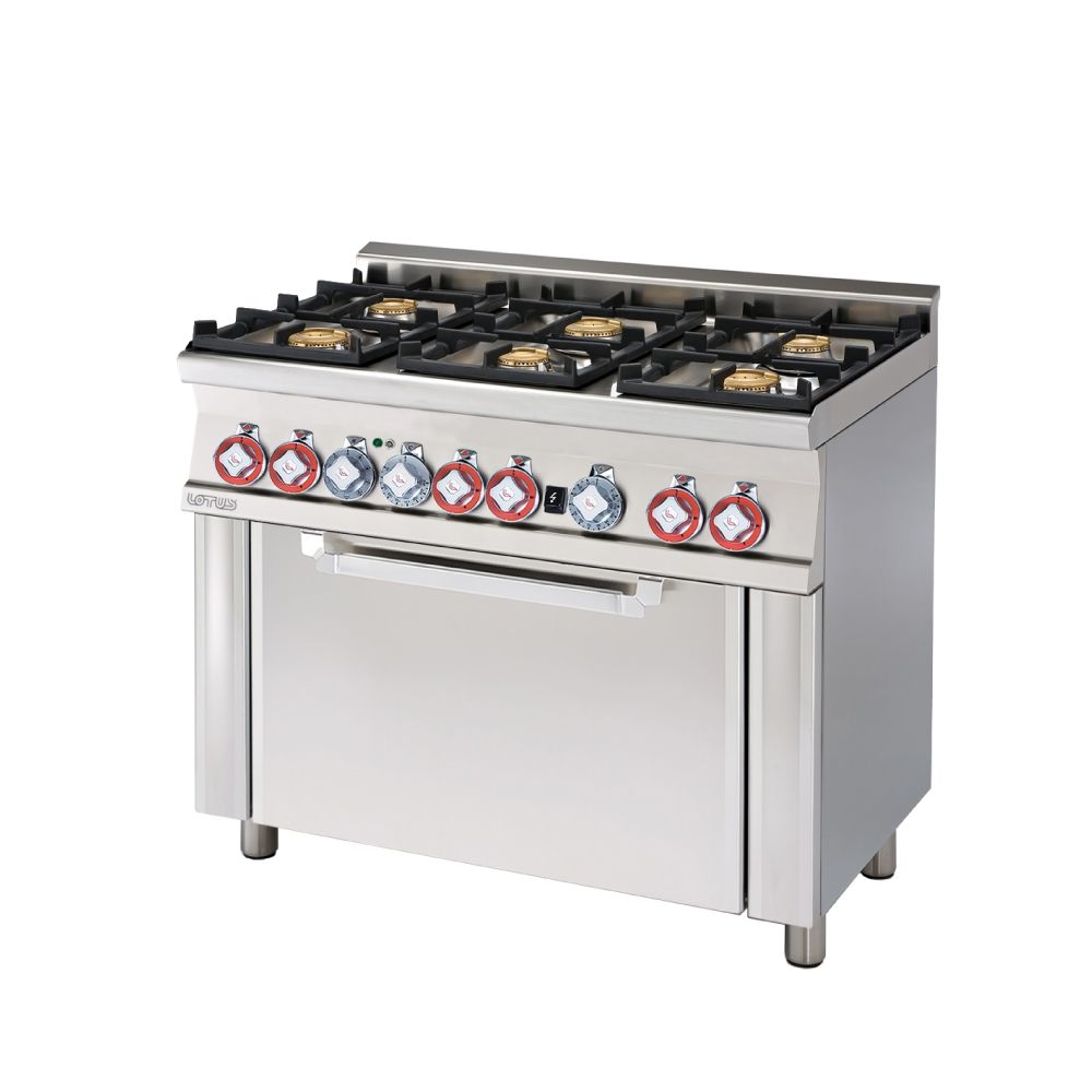 Διαστάσεις 1000x600x900(h)mm Διαστάσεις φούρνου 640x390x350(h)mm Σχάρα φούρνου 530x325mm ή GN 1/1 Θερμοκρασία φούρνου 125 - 275 °C Συνολικη Ισχύς 31 KWatt - 26.660 Kcal/h Ισχύς εστιών (3x3.5)+(3x5.5) KWatt Βάρος 106 Κg Κωδικός Προϊόντος 06681051 Ρυθμιζόμενα πόδια