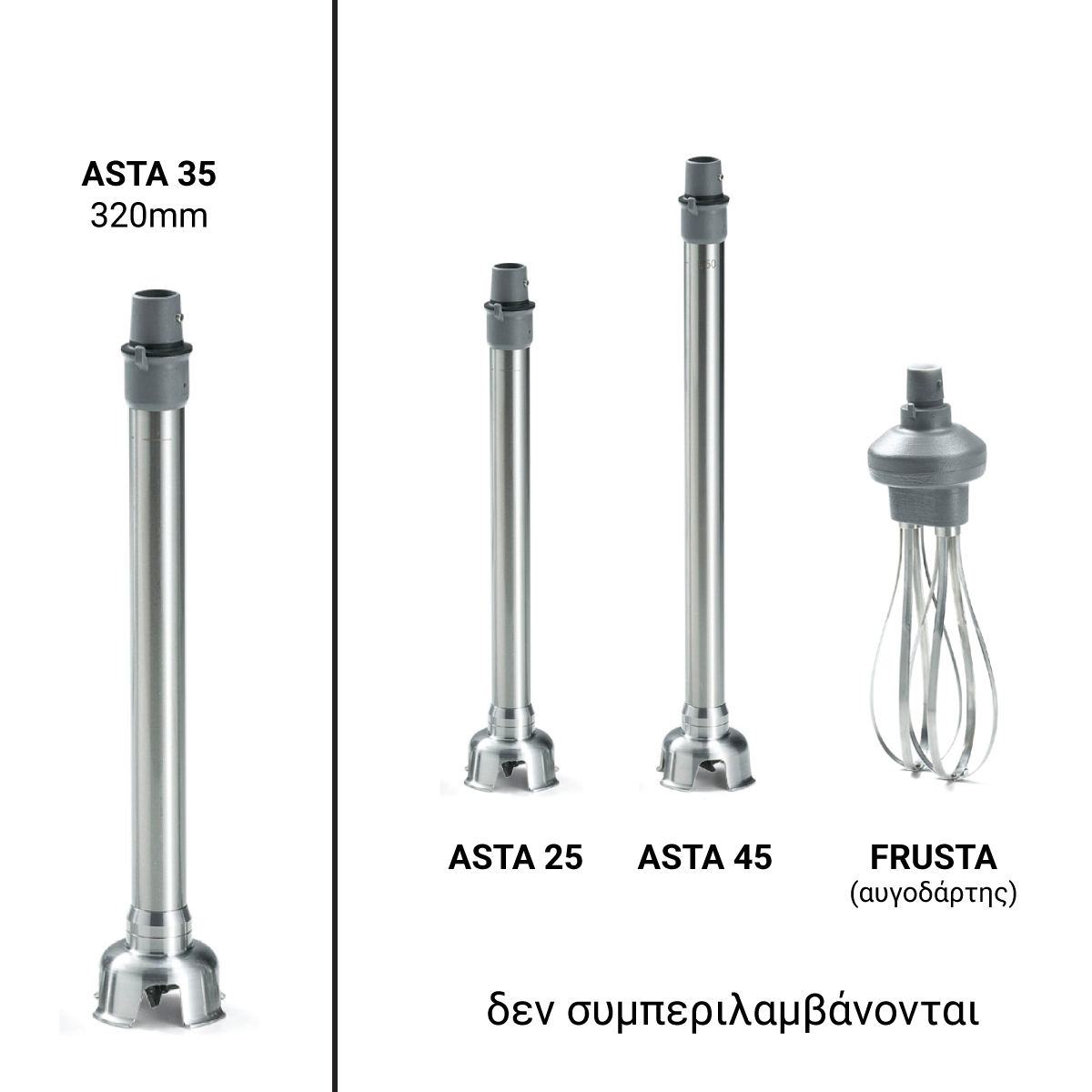 Διαστάσεις 182x100x660660(h)mm Ισχύς 280 Watt, 230V / 50Ηz Στροφές 2.300 - 16.000 Βάρος 3.5 kg Ικανότητα ανάδευσης έως περίπου 40 lt Πρακτική & εργονομική λαβή Συμπεριλαμβάνεται άξονας Asta 35 (κωδ:59.01.006.0002) (Ø94x320[h]mm & μαχαίρι Ø mm 100) .