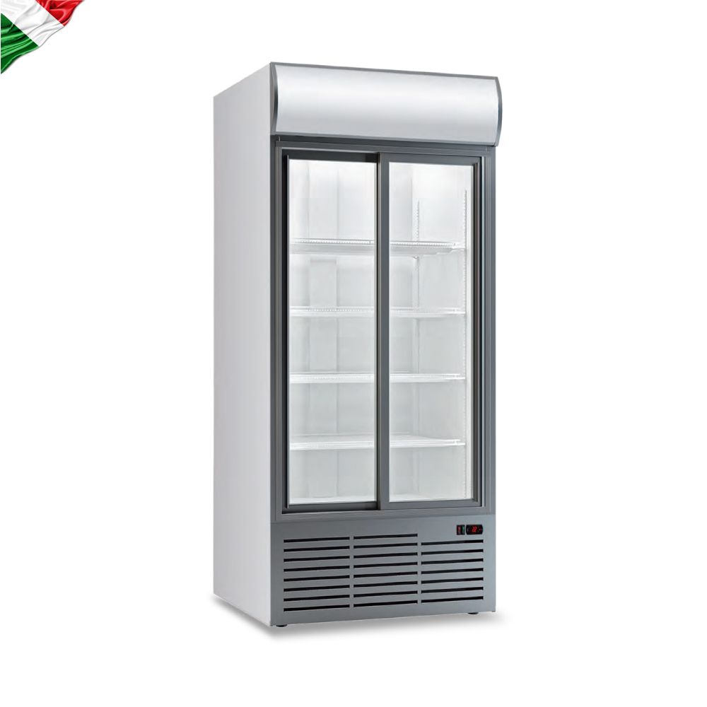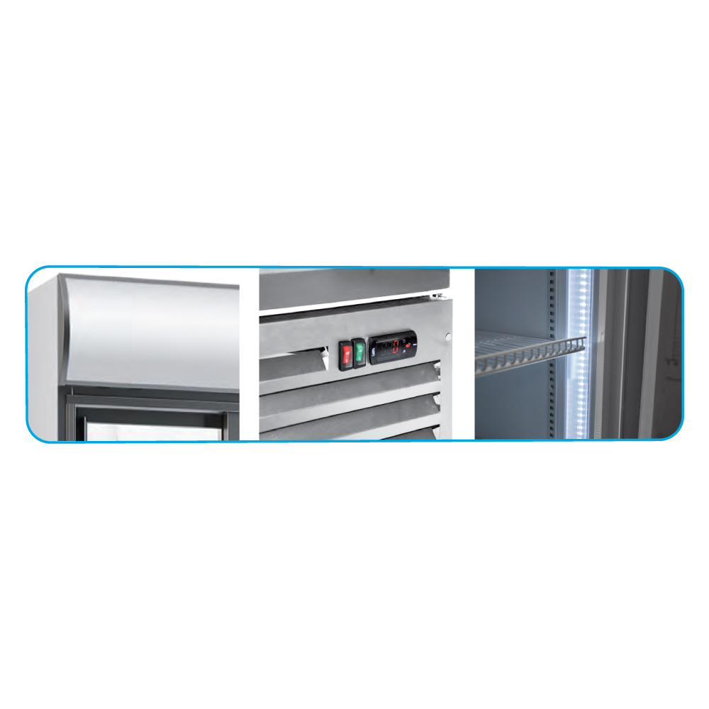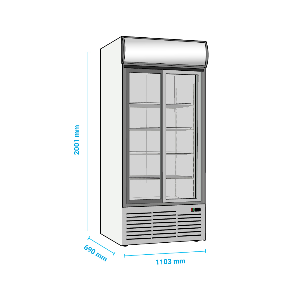 Εξωτερικές διαστάσεις 1103x690x2001(h)mm Εσωτερικές διαστάσεις 1028x509x1351(h)mm Χωρητικότητα 852 lt Θερμοκρασία +1ºC / +10ºC Ισχύς 650Watt / 220-240V / 50 Hz Ψύξη Βεβιασμένη Απόψυξη Αυτόματη Ψυκτικό υγρό R290 Ράφια 8 (500x420mm) Φωτισμός LED (κάθετος) Κλιματική κλάση 4 (+30°C & 55%RH) Βάρος 158 Kg Ψηφιακό Θερμόμετρο / Ηλεκτρονικός Θερμοστάτης Αυτόματη επαναφορά συρόμενης πόρτας 4 ροδάκια / 2 ποδαράκια Κλειδαριά