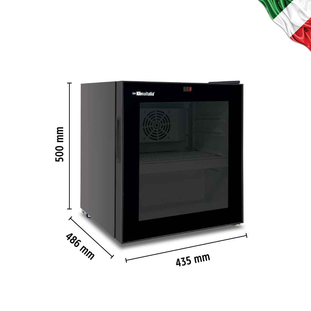 Εξωτερικές διαστάσεις 435x486x500(h)mm Εσωτερικές διαστάσεις 360x340x380(h)mm Χωρητικότητα 76 lt Θερμοκρασία +1 / +10 οC Ισχύς 80Watt / 220V / 50Hz Ψύξη Υποβοηθούμενη με ανεμιστήρα Απόψυξη Αυτόματη Ψυκτικό υγρό R600a Ράφια 1 (379x260mm) Φωτισμός LED (στην πόρτα) Κλιματική κλάση 4 (30°C & 55%RH) Βάρος 19 Kg Πόρτα με σύστημα αυτόματης επαναφοράς Κλειδαριά 4 ποδαράκια ρυθμιζόμενα