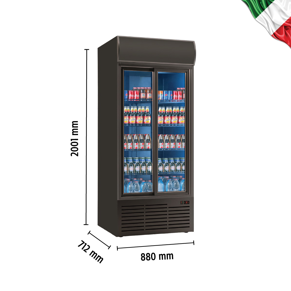 Εξωτερικές διαστάσεις 880x712x2001(h)mm Εσωτερικές διαστάσεις 805x531x1386(h)mm Χωρητικότητα 783 lt Θερμοκρασία +1ºC / +10ºC Ισχύς 500Watt / 220-240V / 50 Hz Ψύξη Βεβιασμένη Απόψυξη Αυτόματη Ψυκτικό υγρό R290 Ράφια 4 (786x490mm) Φωτισμός LED (κάθετος) Κλιματική κλάση 4 (+30°C & 55%RH) Βάρος 152 Kg Ψηφιακό Θερμόμετρο / Ηλεκτρονικός Θερμοστάτης Αυτόματη επαναφορά συρόμενης πόρτας 4 ροδάκια / 2 ποδαράκια Κλειδαριά