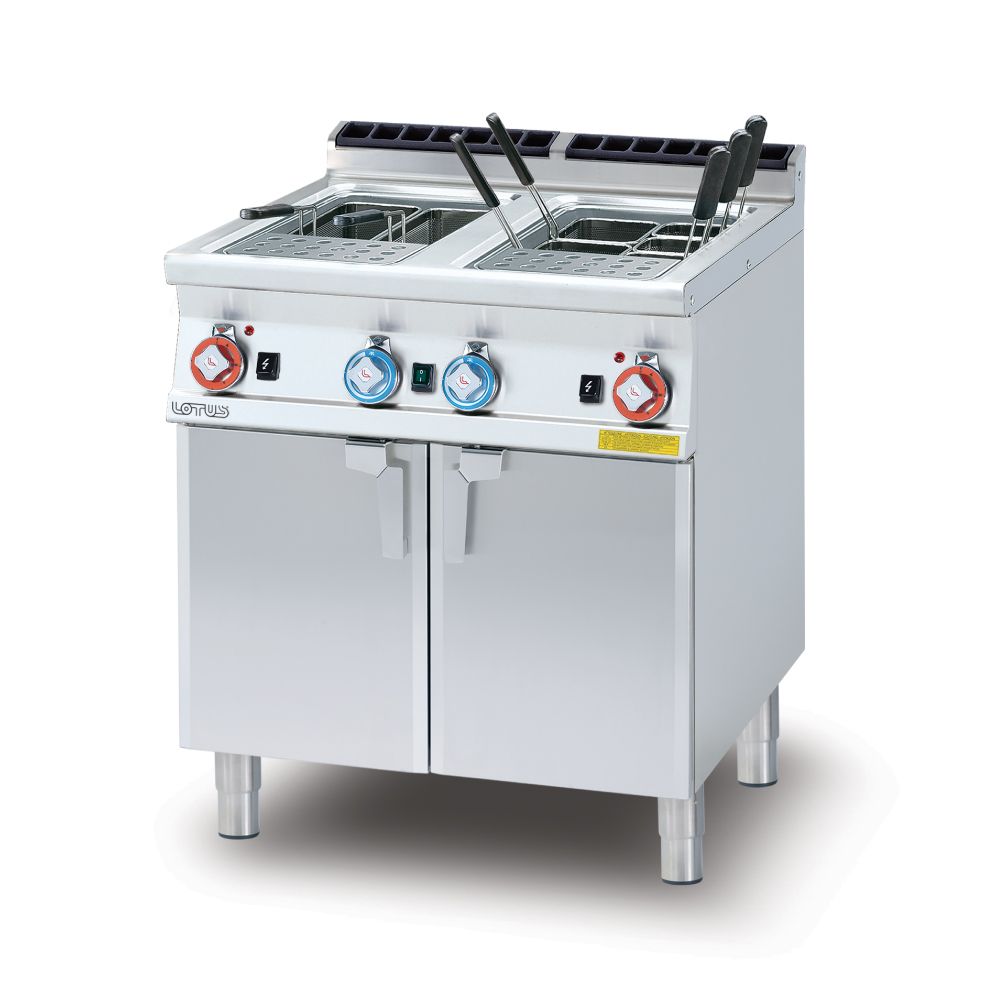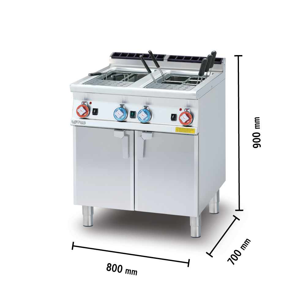 Διαστάσεις 800x705x900(h)mm Διαστάσεις βάσκας 305x335x327(h)mm Χωρητικότητα 25+25 lt Ισχύς 19Kwatt - 16.320Kcal/h Βάρος 103 kg Κωδικός Προϊόντος 08270850 Δε συνοδεύται με καλάθια! Ρυθμιζόμενα πόδια