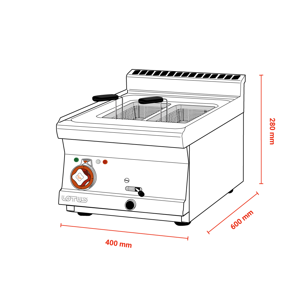 Διαστάσεις 400x600x280(h)mm Διαστάσεις βάσκας 310x335x220(h)mm Χωρητικότητα 17 lt Ισχύς 4,1Kw / 400V / 50-60Hz Βάρος 27 kg Κωδικός Προϊόντος 16100430 Δε συνοδεύται με καλάθια! Ρυθμιζόμενα ποδαράκια