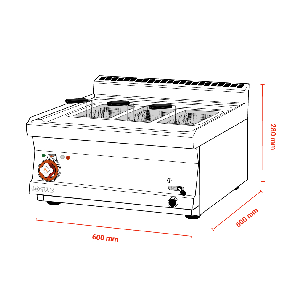Διαστάσεις 600x600x280(h)mm Διαστάσεις βάσκας 510x310x220(h)mm Χωρητικότητα 25 lt Ισχύς 6,25Kw / 400V / 50-60Hz Βάρος 42 kg Κωδικός Προϊόντος 16100630 Δε συνοδεύται με καλάθια! Ρυθμιζόμενα ποδαράκια
