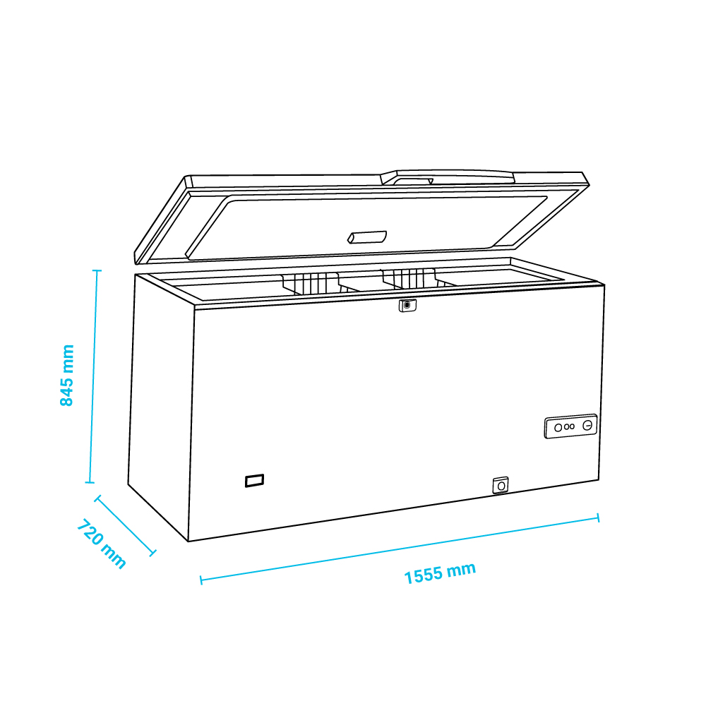 Εξωτερικές διαστάσεις 1555x720x845(h)mm Εσωτερικές διαστάσεις 1430x510x675mm Xωρητικότητα 479 lt Ισχύς 220 Watt, 230V /50Hz Θερμοκρασία -18 / -25 οC Ψύξη Στατική Απόψυξη Χειροκίνητη Ψυκτικό υγρό R600 Βάρος 75 Kg Προδιαγραφές Tropical Θερμομετρο Κλειδαριά
