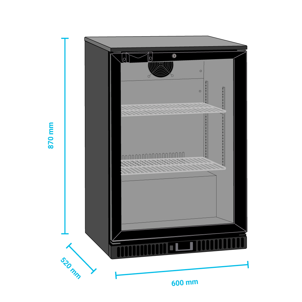 Εξωτερικές διαστάσεις 600x520x870(h)mm Εσωτερικές διαστάσεις 510x350x720(h)mm Χωρητικότητα 122 lt Θερμοκρασία +2 / +10οC Ισχύς 150Watt / 220-240V / 50Hz Ψύξη Βεβιασμένη Απόψυξη Αυτόματη Ψυκτικό υγρό R600a Ράφια 2 (498x335mm) Φωτισμός LED Κλιματική κλάση 4 (30°C & 55%RH) Καθαρό Βάρος 53 Kg Ανοιγόμενη πόρτα με διπλό κρύσταλλο Κλειδαριά Ηλεκτρονικός θερμοστάτης / θερμόμετρο 4 ποδαράκια ρυθμιζόμενα