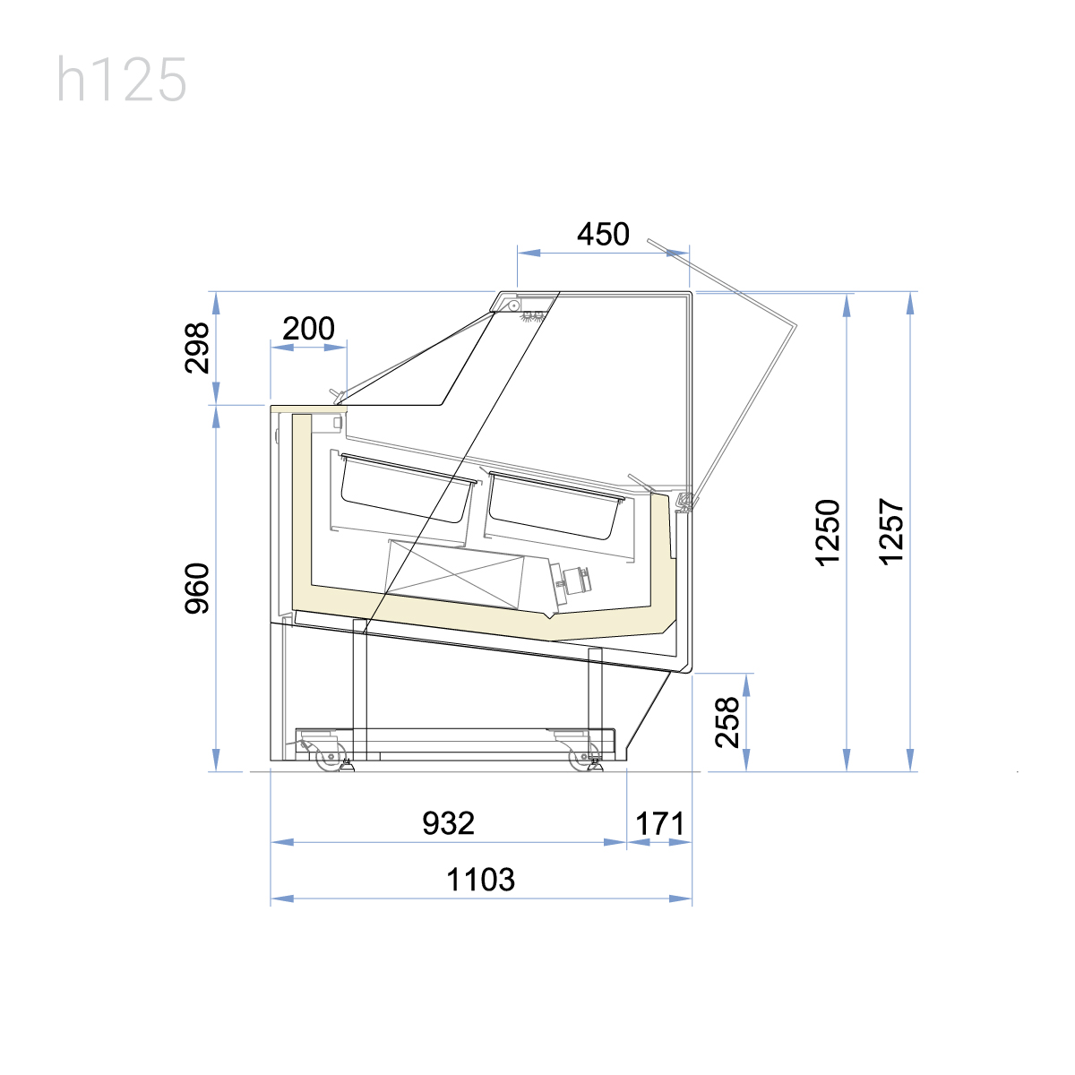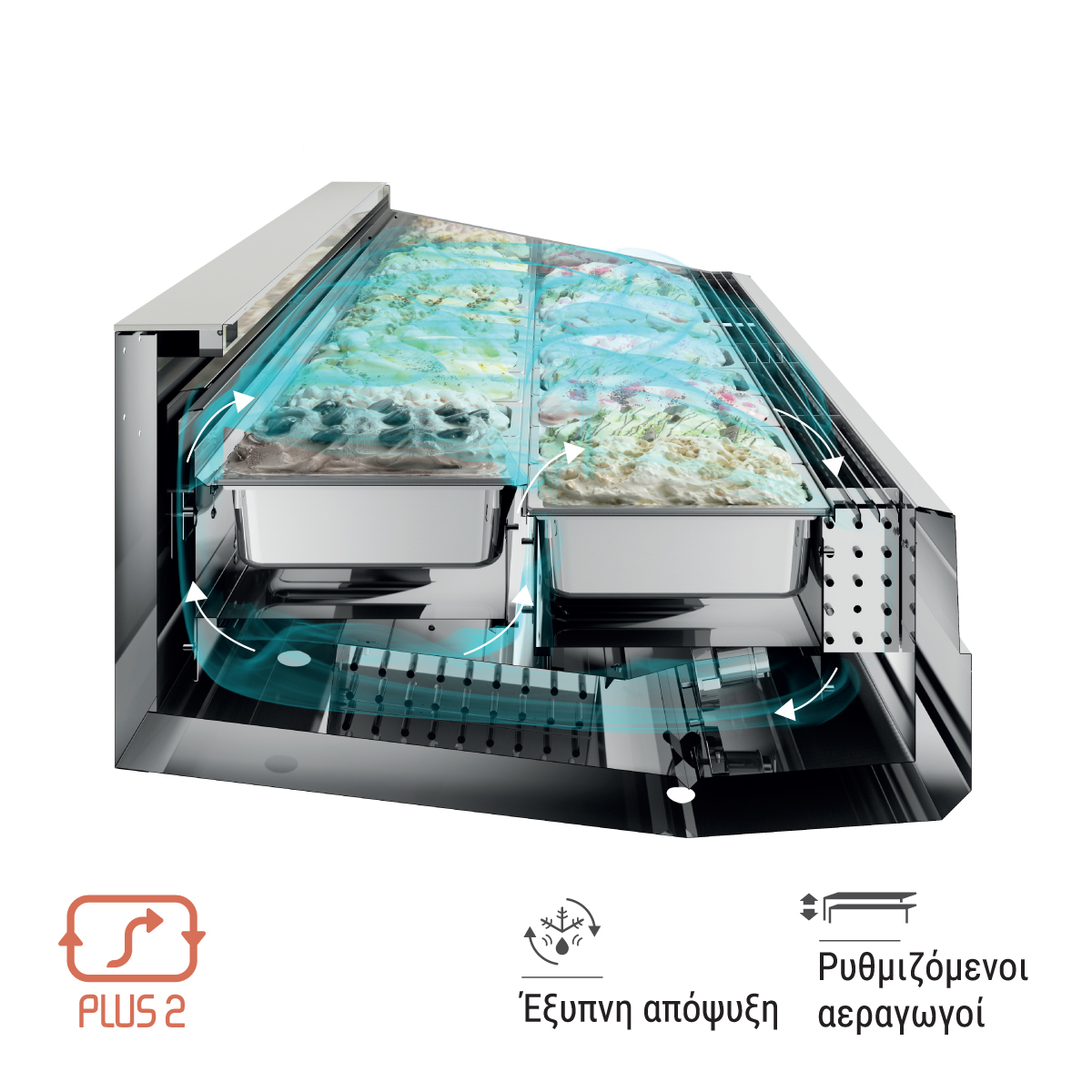Εξωτερικές διαστάσεις 1671x1103x1257(h)mm Χωρητικότητα 18 λεκανάκια (5lt) Βάση Ζαχαροπλαστικής 1541 x 720 mm Θερμοκρασία -20ºC / +2ºC Ισχύς 1720Watt / 400V / 50Hz Ψύξη Βεβιασμένη Απόψυξη Αυτόματη με αναστροφή κύκλου Ψυκτικό υγρό R290 (Plus) Συμπιεστής 2 (κλειστού τύπου) Κλιματική κλάση 7 (35oC & 75%RH) Plus Βάρος 375 Kg Κρύσταλλο ασφαλείας , επίπεδο , ανοιγόμενο μπροστά και αντιθαμβωτικό Συρόμενα plexi glass πίσω ή κουρτίνα νυκτός με μαγνήτη Ηλεκτρονικός πίνακας λειτουργιών Φωτισμός LED Ρυθμιζόμενα πόδια ΤΑ ΛΕΚΑΝΑΙΑ ΠΑΓΩΤΟΥ ΔΕΝ ΣΥΜΠΕΡΙΛΑΜΒΑΝΟΝΤΑΙ