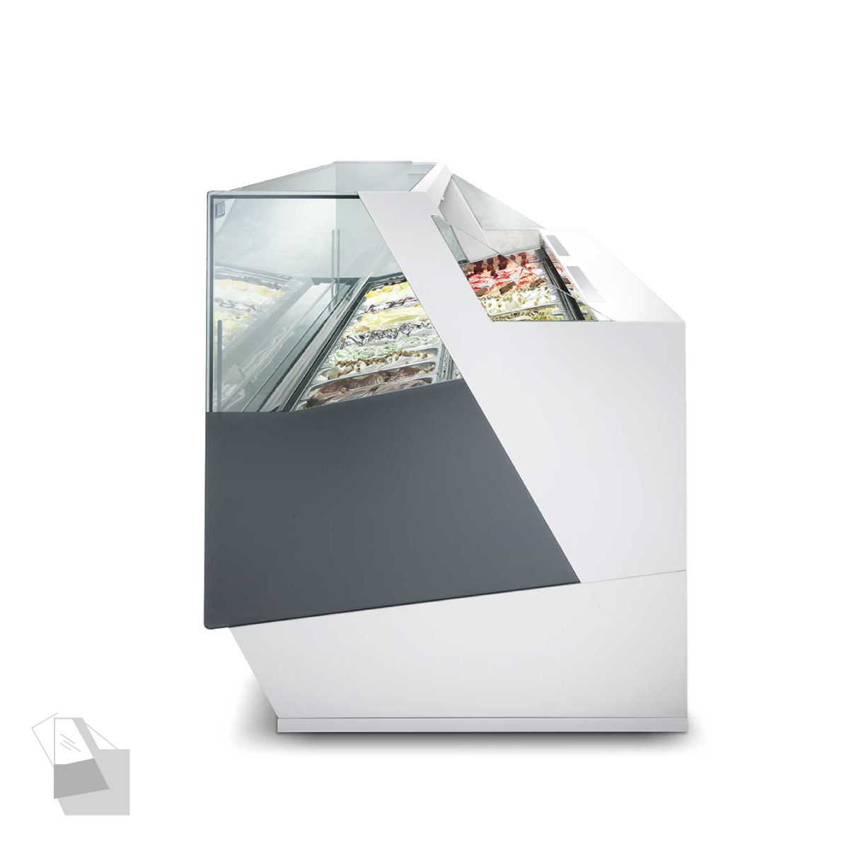 Εξωτερικές διαστάσεις 2166x1103x1408(h)mm Χωρητικότητα 24 λεκανάκια (5lt) Βάση Ζαχαροπλαστικής 2036 x 720 mm Θερμοκρασία -20ºC / +2ºC Ισχύς 2700Watt / 400V / 50Hz Ψύξη Βεβιασμένη Απόψυξη Αυτόματη με αναστροφή κύκλου Ψυκτικό υγρό R290 (Plus) Συμπιεστής 2 (κλειστού τύπου) Κλιματική κλάση 7 (35oC & 75%RH) Plus Βάρος 480Kg Κρύσταλλο ασφαλείας , επίπεδο , ανοιγόμενο μπροστά και αντιθαμβωτικό Συρόμενα plexi glass πίσω ή κουρτίνα νυκτός με μαγνήτη Ηλεκτρονικός πίνακας λειτουργιών Φωτισμός LED Ρυθμιζόμενα πόδια ΤΑ ΛΕΚΑΝΑΙΑ ΠΑΓΩΤΟΥ ΔΕΝ ΣΥΜΠΕΡΙΛΑΜΒΑΝΟΝΤΑΙ