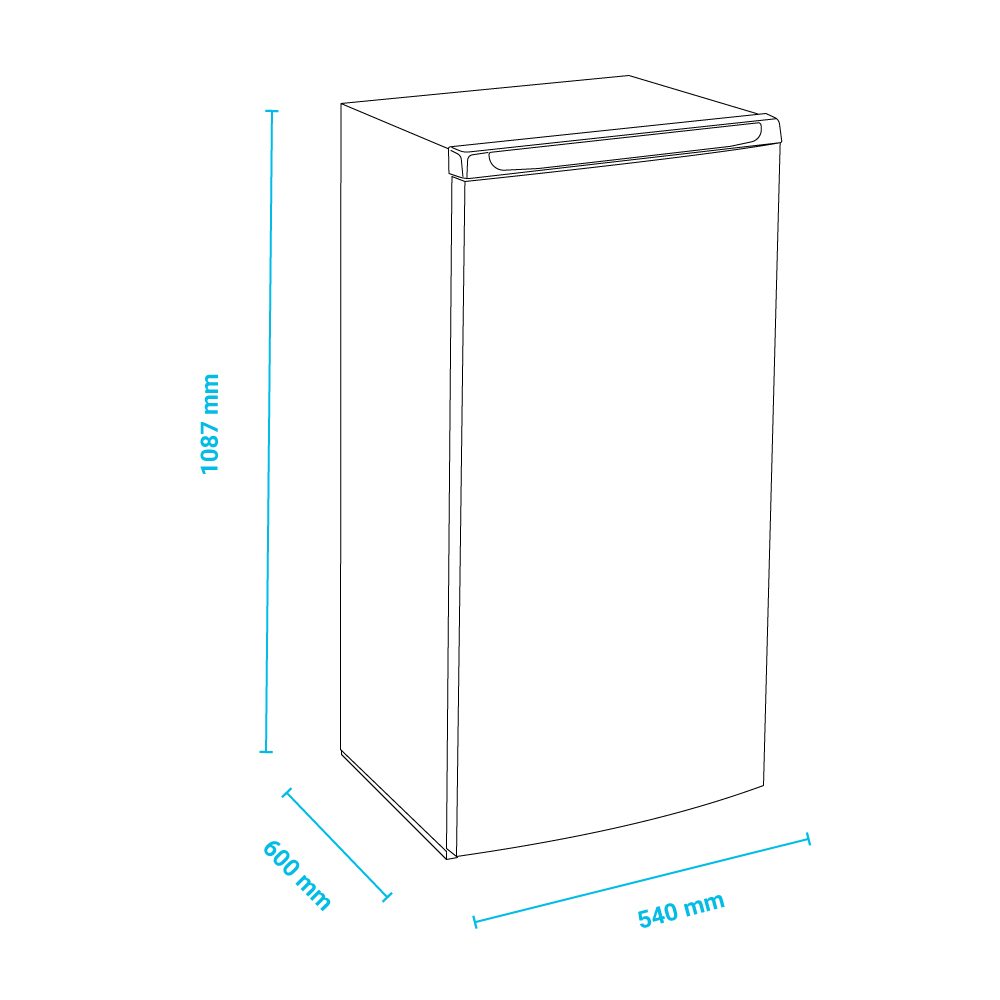 Διαστάσεις 540x600x1087(h)mm Χωρητικότητα 133 lt Ισχύς 167Watt , 230V/50Hz Θερμοκρασία -15 / -25oC Ψύξη Στατική Απόψυξη Χειροκίνητη Ψυκτικό υγρό R600a Ράφια 5 (αποσπώμενα) Κλιματική κλάση 4 (+30oC & 55%RH) Βάρος 40 Kg Μηχανικός θερμοστάτης Αναλογικό θερμόμετρo