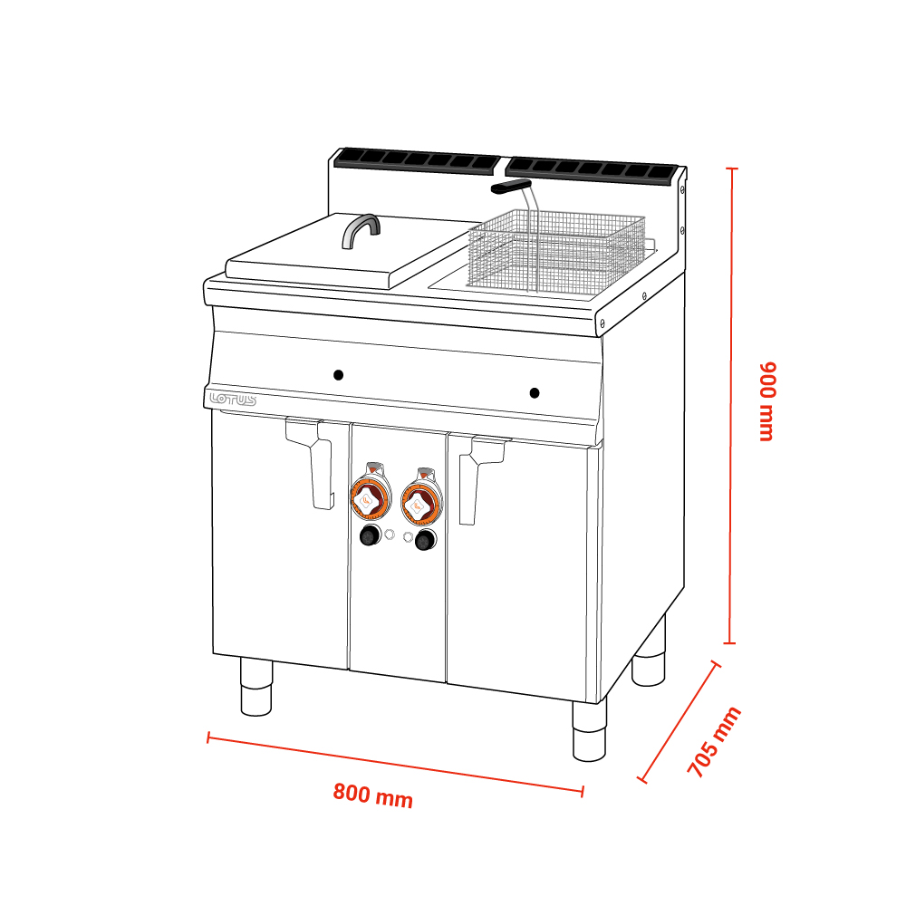 Διαστάσεις 800x705x900(h)mm Ισχύς 18.6 KWatt , 16.000 Kcal/h 2 καλάθια 210x300x120(h)mm Διαστάσεις βάσκας 240x350x380(h)mm Βάρος 102 kg Κωδικός προϊόντος 082 60 850