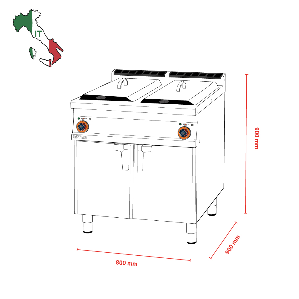 Διαστάσεις 800x900x900(h)mm Διαστάσεις βάσκας (2x) 310x510x440(h)mm Χωρητικότητα βάσκας 25+25 lt Διαστάσεις καλαθιού (2x) 135x450x150(h)mm Ισχύς 40 KWatt - 34.360Kcal/h Βάρος 126 kg Κωδικός προϊόντος 09260851 Ρυθμιζόμενα πόδια