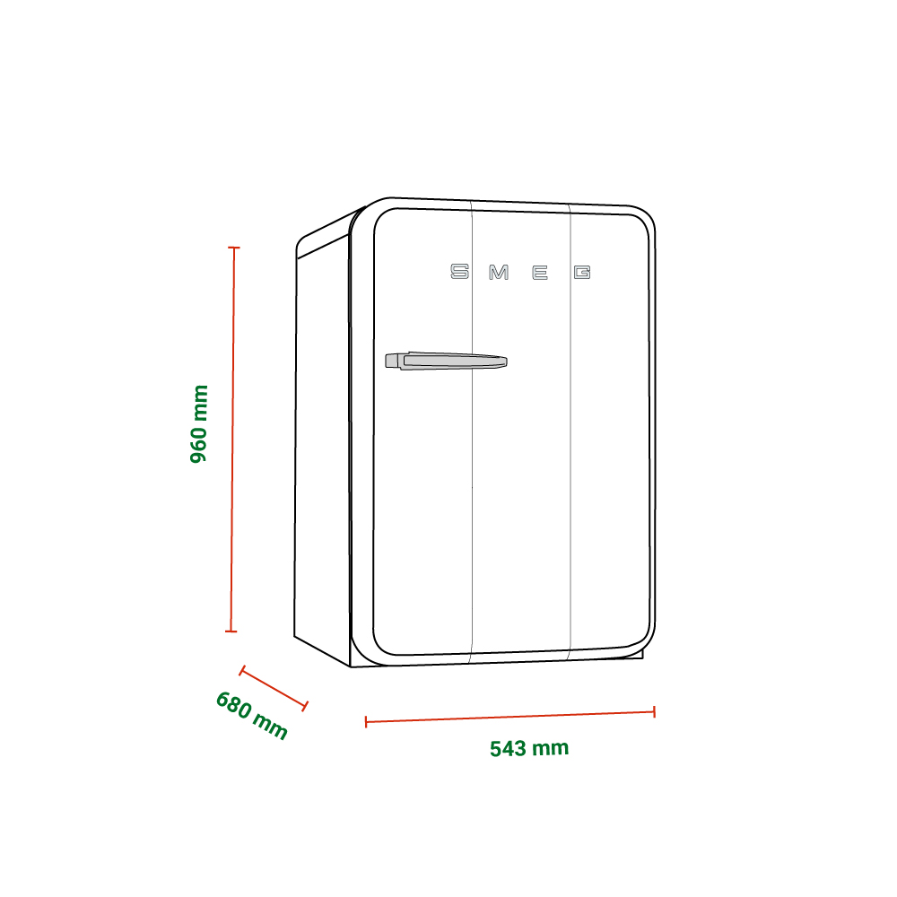 Διαστάσεις 543x632x960(h) mm Χωρητικότητα 120 lt Ράφια 2 ρυθμιζόμενα Πόρτα 1 μπουκαλοθήκη & 2 ράφια Ψύξη Στατική Κατανάλωση 116 kWh / έτος Κλιματική Κλάση SN Θόρυβος 37 db Έκδοση FAB10HRIT Ρυθμιζόμενος θερμοστάτης Εσωτερικός Φωτισμός Led Άνοιγμα πόρτας προς τα δεξία Αυτόματη απόψυξη Δυνατότητα αναστροφής φοράς πόρτας (FAB10HLIT) Πλάτος με την πόρτα ανοικτή : 1100 mm (με την λαβή)